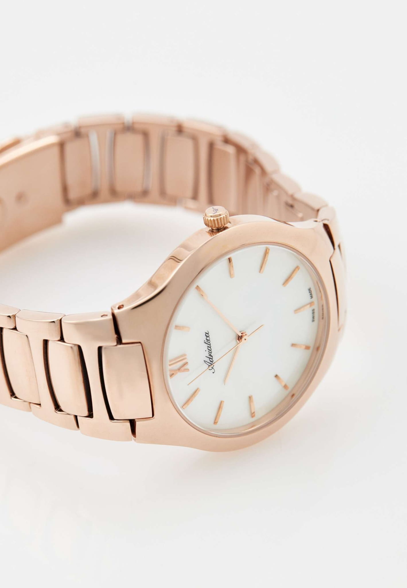 Часы Adriatica A3425.916FQ воплощают в себе утонченность и надежность швейцарского часового искусства. Эти часы идеально подойдут для тех, кто ценит стиль и качество в одном изделии. Перламутровый циферблат защищен минеральным стекломМинеральное стеклоМинеральное стекло представляет собой искусственно выращенный минерал кварца. Такое стекло отличается особой устойчивостью к повреждениям и царапинам. Уступает по некоторым качествам сапфировому стеклу. и заключен в корпус, выполненный из нержавеющей стали с PVDPVDУльтратонкое покрытие наносится в технике вакуумного напыления, сочетает в себе нитрид титана особой прочности со слоем золота или оксида хрома. Несёт в себе декоративную или защитную функцию. покрытием цвета розового золота, которое придает дополнительную прочность и элегантный вид. Часы оснащены кварцевым механизмом Ronda 763, обеспечивающим высокую точность и надежность. Водозащита 50WR делает их устойчивыми к воздействию воды, что позволяет не беспокоиться о случайных брызгах. Стальной браслет с PVDPVDУльтратонкое покрытие наносится в технике вакуумного напыления, сочетает в себе нитрид титана особой прочности со слоем золота или оксида хрома. Несёт в себе декоративную или защитную функцию. покрытием цвета розового золота с раскладной застёжкойРаскладная застёжкаТакой тип застёжки используется только на браслетах из металла. Она никогда не раскрывается полностью, происходит разделение на 2 и более частей. Раскладывающая застёжка снизит вероятность потери часов к минимуму. подчеркивает современный стиль и обеспечивает комфортное ношение.
