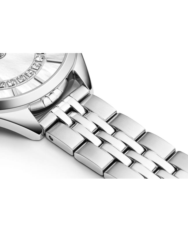 Женские часы с минеральным стекломМинеральное стеклоМинеральное стекло представляет собой искусственно выращенный минерал кварца. Такое стекло отличается особой устойчивостью к повреждениям и царапинам. Уступает по некоторым качествам сапфировому стеклу. Adriatica A3817.511FQ, кварцевый механизм Ronda 783, работающим от батарейки с высокой точностью. Класс водозащиты: 30 метров, позволит защитить корпус от случайных брызг или капель дождя. Корпус часов изготовлен из стали. Стальной браслет на раскладной застёжкеРаскладная застёжкаТакой тип застёжки используется только на браслетах из металла. Она никогда не раскрывается полностью, происходит разделение на 2 и более частей. Раскладывающая застёжка снизит вероятность потери часов к минимуму..
