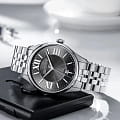 Мужские швейцарские часыAerowatch Les Grandes Classiques 42997 AA02 M, кварцевый механизм с высокой точностью. Сапфировое стеклоСапфировое стеклоПрочный и надёжный материал из кристалла сапфира синтетического происхождения, характеризующийся особой твёрдостью и устойчивостью к царапинам и повреждениям. устойчивое к появлению царапин, обладающее высокой прозрачностью. Корпус и браслет изготовлены из нержавеющей стали. На циферблате расположены стрелки с люминесцентным покрытиемЛюминесцентное покрытиеПозволяет считывать показания времени в темноте. Производители наносят на стрелки, часовые индексы, безель или поверхность циферблата светонакопительный состав, дающий холодное свечение., окошко даты в положении 6 часов. Класс водозащиты: 50 метров, позволит защитить корпус от случайных брызг или капель дождя. Стальной браслет на застёжке «бабочка» с кнопкамиЗастёжка "бабочка"Такой вид застёжки дополняется предохранителями, помогающими избежать случайного раскрытия браслета. Обладают изящным исполнением. .