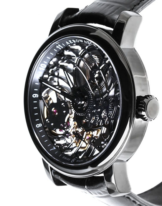 Мужские швейцарские механические часы-скелетоны Aerowatch 50931 NO01, механический механизм (автоматический калибр) с высокой точностью. Сапфировое стекло устойчивое к появлению царапин, обладающее высокой прозрачностью. Класс водозащиты: 50 метров, позволит защитить корпус от случайных брызг или капель дождя. Корпус часов изготовлен из стали, черного цвета.