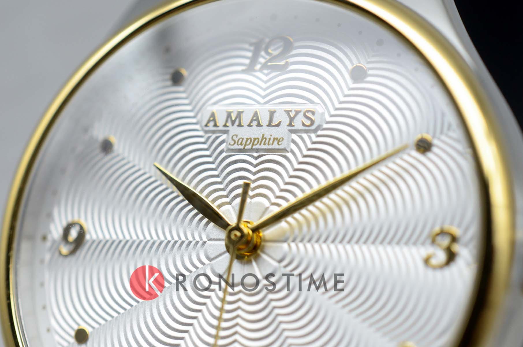 Amalys AMW-157 — женская модель с утончённым современным дизайном, в которой сочетаются минимализм и элегантность. Круглый корпус диаметром 31 мм гармонирует с браслетом с PVD-покрытиемPVDУльтратонкое покрытие наносится в технике вакуумного напыления, сочетает в себе нитрид титана особой прочности со слоем золота или оксида хрома. Несёт в себе декоративную или защитную функцию. шириной 16 мм, выполненным из нержавеющей стали и оснащённым раскладным замкомРаскладной замокДанный вариант застежки используется только на часах с металлическим браслетом. Отличительная особенность такого крепления в том, что длина браслета становится универсальной и вы можете самостоятельно отрегулировать нужный вам размер – застежка просто двигается по браслету часов., обеспечивающим удобство и надёжность при носке. БезельБезельВнешний ободок, закрепляющий стекло. В спортивных часах так называется поворотное кольцо с делениями на циферблате, выполняет роль таймера – замеряет отрезки времени на шкале. Неподвижный безель – элемент декора. Однонаправленно вращающийся безель на дайверских часах позволяет фиксировать моменты погружения и выныривания на поверхность. с PVD-покрытиемPVDУльтратонкое покрытие наносится в технике вакуумного напыления, сочетает в себе нитрид титана особой прочности со слоем золота или оксида хрома. Несёт в себе декоративную или защитную функцию.. Механизм — кварцевый, что гарантирует точный и стабильный ход. Защитную функцию выполняет сапфировое стеклоСапфировое стеклоПрочный и надёжный материал из кристалла сапфира синтетического происхождения, характеризующийся особой твёрдостью и устойчивостью к царапинам и повреждениям., стойкое к царапинам и сохраняющее прозрачность. Водозащита 5 ATM делает модель устойчивой к случайным брызгам и кратковременному контакту с водой. Лаконичный циферблат с декоративным узором и изящными стрелками подчёркивает изысканный характер часов, создавая универсальный образ, подходящий как для повседневных ситуаций, так и для особых случаев.
