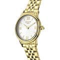Amalys AMW-162 — женская модель с утончённым классическим дизайном, в которой сочетаются элегантность и практичность. Круглый корпус диаметром 28 мм выполнен из нержавеющей стали с PVDPVDУльтратонкое покрытие наносится в технике вакуумного напыления, сочетает в себе нитрид титана особой прочности со слоем золота или оксида хрома. Несёт в себе декоративную или защитную функцию.-покрытием тёплого оттенка, гармонирующим с браслетом шириной 14 мм в том же исполнении. Защитную функцию выполняет сапфировое стеклоСапфировое стеклоПрочный и надёжный материал из кристалла сапфира синтетического происхождения, характеризующийся особой твёрдостью и устойчивостью к царапинам и повреждениям., стойкое к царапинам и сохраняющее прозрачность. Механизм — кварцевый, обеспечивающий точность и стабильность хода. Браслет с PVDPVDУльтратонкое покрытие наносится в технике вакуумного напыления, сочетает в себе нитрид титана особой прочности со слоем золота или оксида хрома. Несёт в себе декоративную или защитную функцию. снабжён раскладным замкомРаскладной замокДанный вариант застежки используется только на часах с металлическим браслетом. Отличительная особенность такого крепления в том, что длина браслета становится универсальной и вы можете самостоятельно отрегулировать нужный вам размер – застежка просто двигается по браслету часов., который сочетает надёжность фиксации и удобство повседневного использования. Водозащита 5 ATM защищает часы от случайных брызг и дождя. Циферблат с римскими индексами и изящными стрелками подчёркивает классическую эстетику модели, делая её уместной как в повседневных образах, так и в торжественной обстановке.
