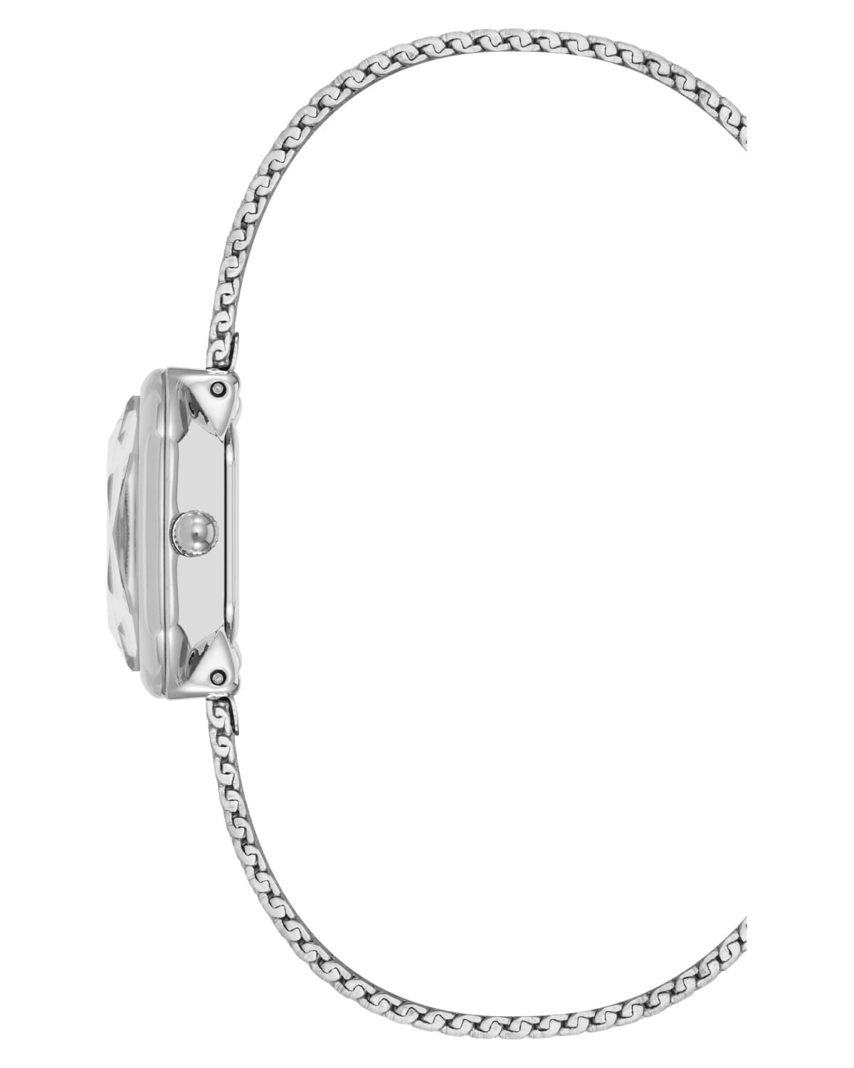 Женские кварцевые часы Anne Klein Metals 5249SVSV представляют собой элегантный аксессуар с корпусом 24 мм из стали серебристого цвета. Модель оснащена кварцевым механизмом с точностью хода ±20 секунд в месяц. Циферблат со стрелками защищен минеральным стекломМинеральное стеклоМинеральное стекло представляет собой искусственно выращенный минерал кварца. Такое стекло отличается особой устойчивостью к повреждениям и царапинам. Уступает по некоторым качествам сапфировому стеклу., устойчивым к царапинам. Водонепроницаемость 30 метров (3 атм) обеспечивает защиту от брызг и дождя. Изысканный браслет из нержавеющей стали с раскладным замкомРаскладной замокДанный вариант застежки используется только на часах с металлическим браслетом. Отличительная особенность такого крепления в том, что длина браслета становится универсальной и вы можете самостоятельно отрегулировать нужный вам размер – застежка просто двигается по браслету часов. гармонично сочетается с корпусом, создавая целостный образ. Часы отличаются утонченным профилем и комфортной посадкой на запястье.