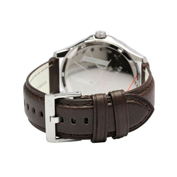 Американские мужские часы Armani Exchange Hampton AX2100, кварцевый механизм с высокой точностью. Минеральное стеклоМинеральное стеклоМинеральное стекло представляет собой искусственно выращенный минерал кварца. Такое стекло отличается особой устойчивостью к повреждениям и царапинам. Уступает по некоторым качествам сапфировому стеклу. устойчивое к появлению царапин, обладающее высокой прозрачностью. Класс водозащиты: 50 метров, позволит защитить корпус от случайных брызг или капель дождя. Корпус часов изготовлен из стали. Окошко даты находится в положении 3 часов. Кожаный ремешок.