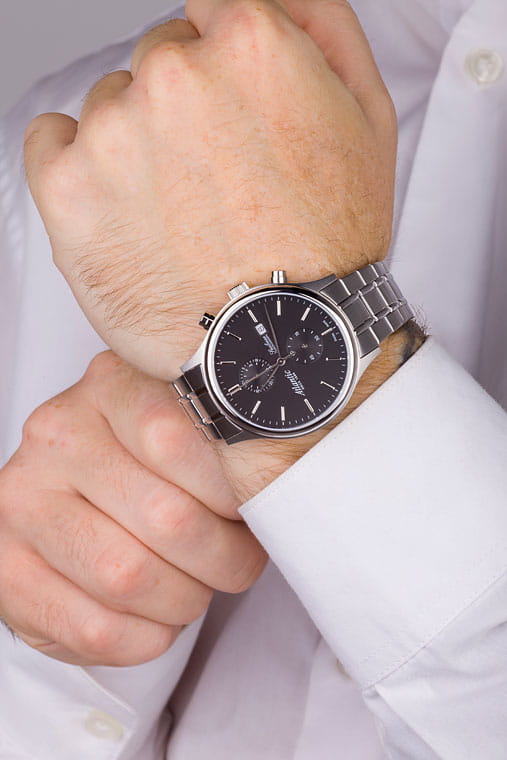 Мужские кварцевые швейцарские часы Atlantic Seabase Quartz Chronograph Edition c хронографомХронографФункция позволяет измерять отрезки времени с особой точностью: часы, минуты, секунды. Верным признаком хронографа является наличие на циферблате 3 дополнительных окошек-счётчиков. 64457.41.61, механизм с высокой точностью. Циферблат часов с сапфировым стекломСапфировое стеклоПрочный и надёжный материал из кристалла сапфира синтетического происхождения, характеризующийся особой твёрдостью и устойчивостью к царапинам и повреждениям., устойчивым к появлению царапин и обладающее высокой прозрачностью. Класс водозащиты: 50 метров, позволит защитить корпус от случайных брызг или капель дождя. Корпус часов изготовлен из нержавеющей стали. Стальной браслет на раскладной застёжкеРаскладная застёжкаТакой тип застёжки используется только на браслетах из металла. Она никогда не раскрывается полностью, происходит разделение на 2 и более частей. Раскладывающая застёжка снизит вероятность потери часов к минимуму.. Окошко даты находится в положении 3 часа.