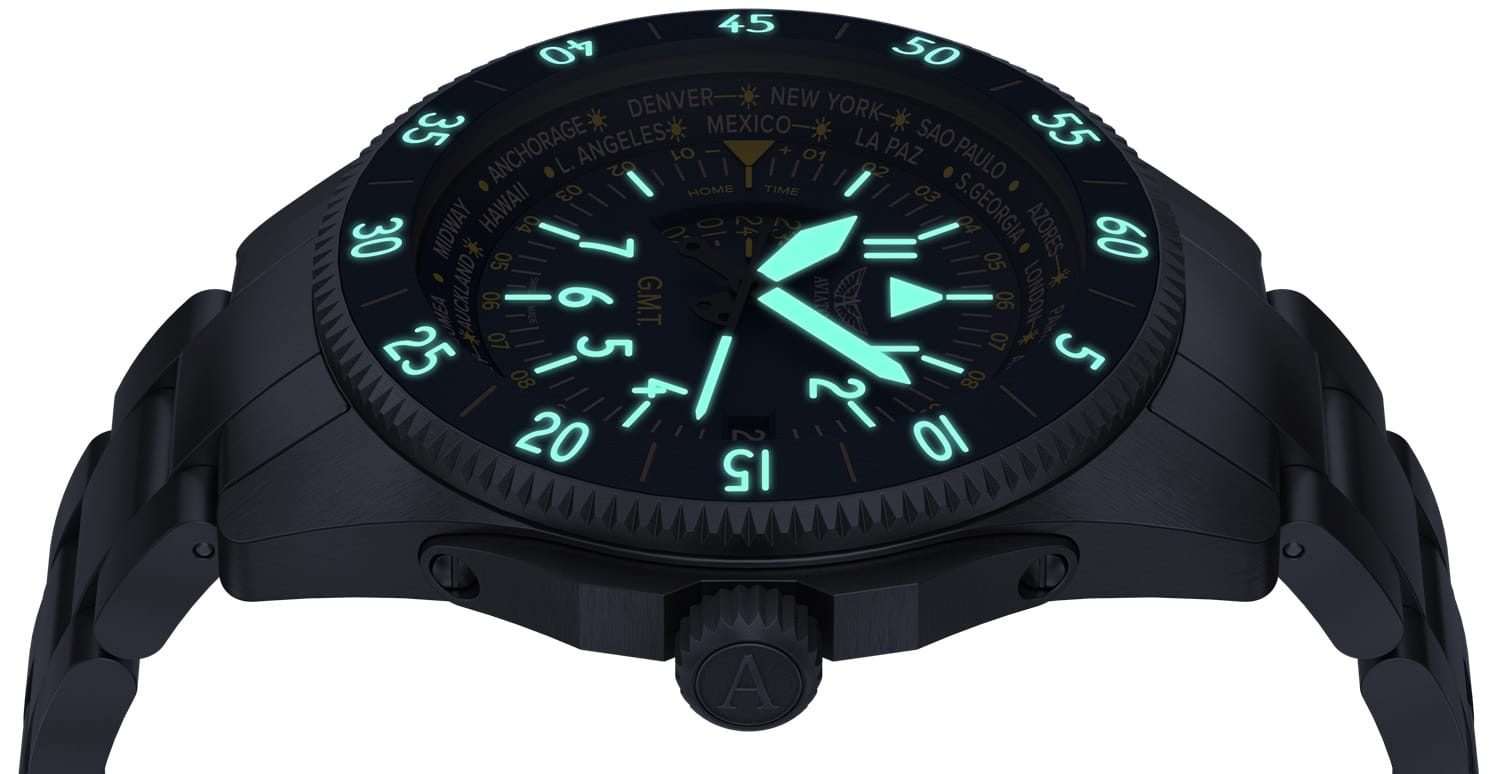 Aviator Airacobra GMT V.1.37.0.304.5 — сбалансированный швейцарский пилотский GMT, сочетающий техническую строгость с удобными функциями для путешествий. Корпус диаметром 42.8 мм из нержавеющей стали 316 L обеспечивает уверенное ощущение надёжности, а герметичность до 100 м защищает при любой погоде. Циферблат отличается детальной функциональностью: в центре — крупные арабские цифры и стрелки, покрытые люминесцентным покрытиемЛюминесцентное покрытиеПозволяет считывать показания времени в темноте. Производители наносят на стрелки, часовые индексы, безель или поверхность циферблата светонакопительный состав, дающий холодное свечение. Superluminova, обеспечивающими мгновенное считывание времени даже в темноте. На «3 часах» — окошко даты, а индикатор второго часового пояса (GMT) удобно расположен на «9 часах». С внешней стороны — вращающийся безельБезельВнешний ободок, закрепляющий стекло. В спортивных часах так называется поворотное кольцо с делениями на циферблате, выполняет роль таймера – замеряет отрезки времени на шкале. Неподвижный безель – элемент декора. Однонаправленно вращающийся безель на дайверских часах позволяет фиксировать моменты погружения и выныривания на поверхность. со вставкой из керамики и градусной шкалой для секунд — идеален для расчёта времени пути или времени прибытия . Циферблат защищён сапфировым стекломСапфировое стеклоПрочный и надёжный материал из кристалла сапфира синтетического происхождения, характеризующийся особой твёрдостью и устойчивостью к царапинам и повреждениям. с антибликовым покрытиемАнтибликовое покрытиеСлой оксида металла в 0,13-0,3 микрон, благодаря которому стекло часов не бликует и не отражает свет. Антибликовое покрытие уменьшает отражение света в 10 раз, обеспечивая отличную читаемость показателей циферблата., гарантирующим чёткий обзор без отражений. Часы выдерживают активную эксплуатацию благодаря завинчивающейся заводной головке и ударопрочному корпусуУдаропрочный корпусМеханизм заключён в корпус, выполненный из современных материалов, устойчивых к ударам, механическим повреждениям и падению с высоты: инновационный пластик, карбон, нержавеющая сталь, титан., соответствующим требованиям авиационной надёжности. Стальной браслет с раскладной застёжкойРаскладная застёжкаТакой тип застёжки используется только на браслетах из металла. Она никогда не раскрывается полностью, происходит разделение на 2 и более частей. Раскладывающая застёжка снизит вероятность потери часов к минимуму. сочетает комфорт, элегантность и практичность. Airacobra GMT — инструментальное сочетание часовой точности, удобной функциональности GMT и авиационной эстетики, предназначенное для тех, кто ценит практичность и стиль в равной мере.