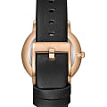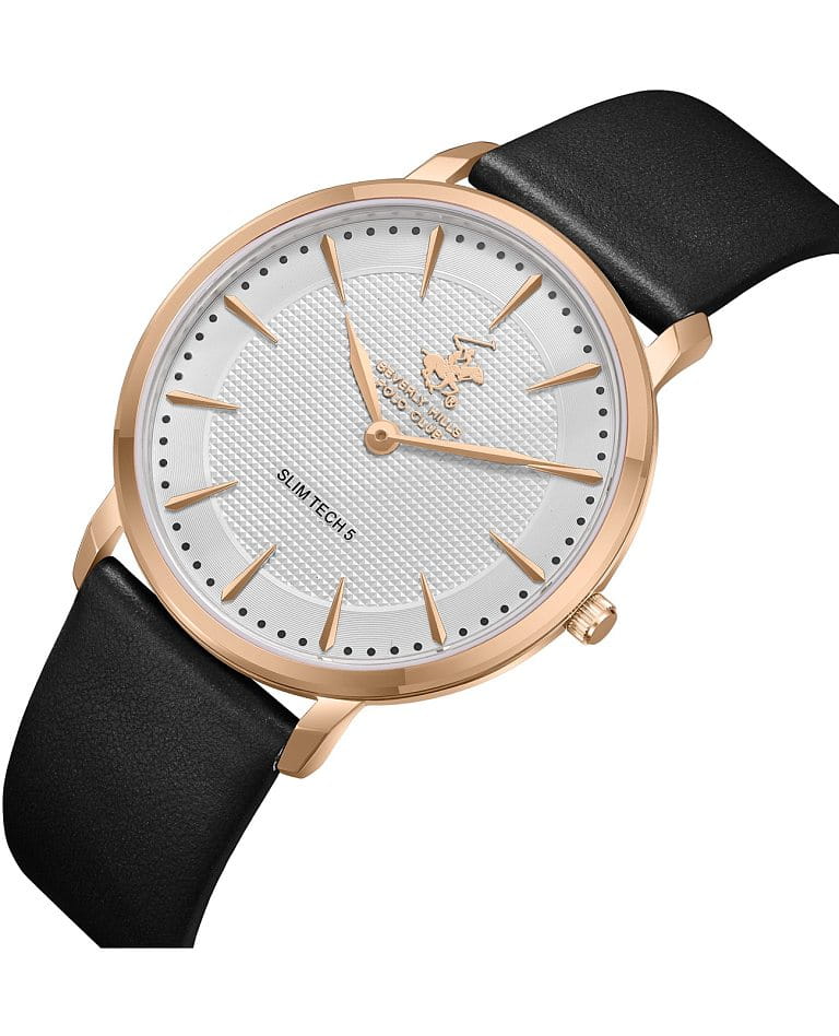 Оснащённая кварцевым механизмом, эта модель обеспечивает высокую точность измерения времени. Чёрный кожаный ремешок с классической застёжкой создаёт комфортные условия для носки и гарантирует надёжную фиксацию на запястье.