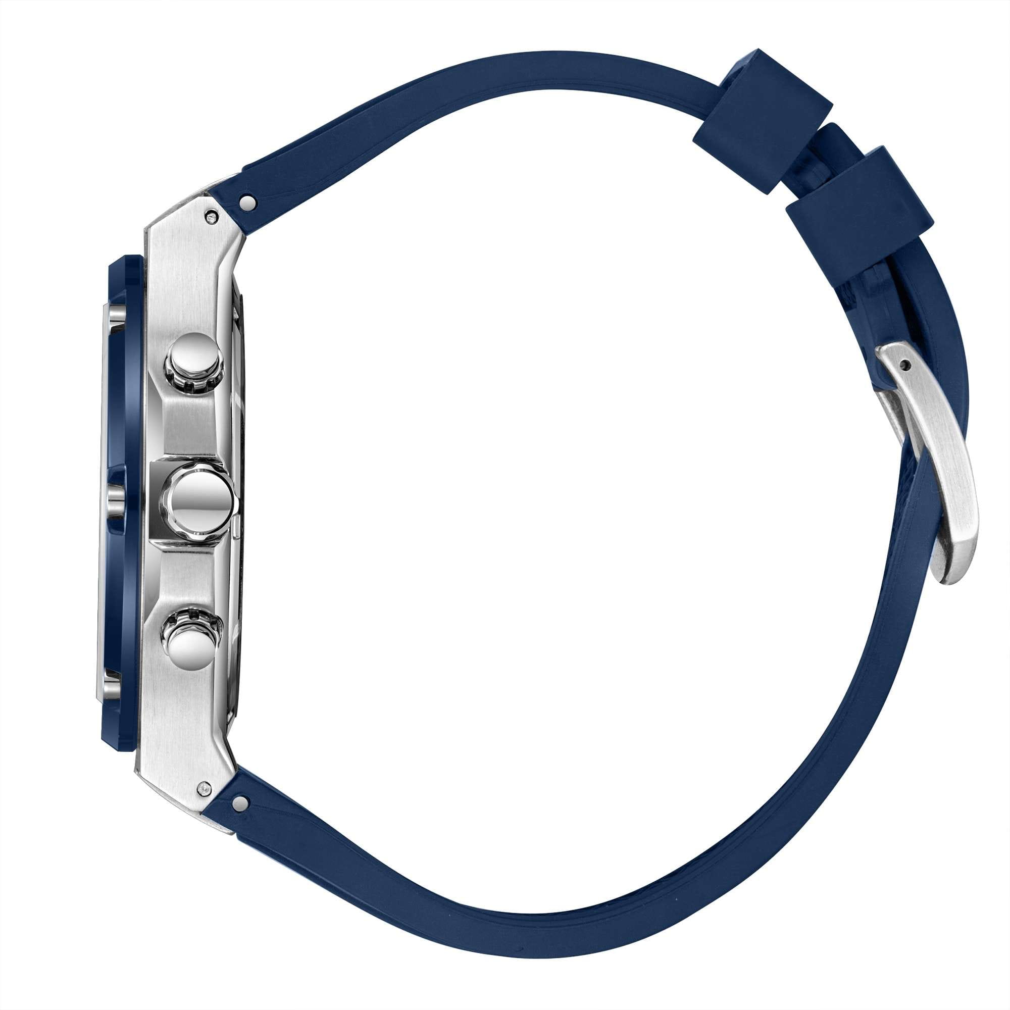 BEVERLY HILLS POLO CLUB BP3822X.399 — стильные мужские часы, сочетающие спортивную динамику и функциональность. Крупный корпус выполнен из нержавеющей стали серебристого цвета, диаметром 46,5 мм, гармонично дополнен каучуковым ремешком на стандартной застежке, что обеспечивает комфортное ношение. Минеральное стеклоМинеральное стеклоМинеральное стекло представляет собой искусственно выращенный минерал кварца. Такое стекло отличается особой устойчивостью к повреждениям и царапинам. Уступает по некоторым качествам сапфировому стеклу. с сапфировым покрытием защищает циферблат от царапин, а кварцевый механизм обеспечивает высокую точность. Благодаря своей универсальной эстетике эти часы уместны и в деловой среде, и в повседневном образе. Стрелки и метки с люминесцентным покрытиемЛюминесцентное покрытиеПозволяет считывать показания времени в темноте. Производители наносят на стрелки, часовые индексы, безель или поверхность циферблата светонакопительный состав, дающий холодное свечение., обеспечивающим хорошую читаемость в темноте. Неподвижный безельБезельВнешний ободок, закрепляющий стекло. В спортивных часах так называется поворотное кольцо с делениями на циферблате, выполняет роль таймера – замеряет отрезки времени на шкале. Неподвижный безель – элемент декора. Однонаправленно вращающийся безель на дайверских часах позволяет фиксировать моменты погружения и выныривания на поверхность. с IP-покрытиемIP-покрытиеМетод ионного напыления. Демонстрирует повышенную устойчивость к истиранию, окислению и химическим веществам. Под воздействием высокого давления и температуры около 1500°C молекулы металла надёжно соединяются с частицами корпуса часов. синего цвета. Указатель дня недели вынесен на отдельный циферблат, также присутствует индикация 24-часового формата времени. Окошко даты находится в положении между 4 и 5 часов. Идеальный выбор для тех, кто ценит элегантный дизайн и качество. Водозащита до 50 метров позволит защитить корпус от случайных брызг или капель дождя.