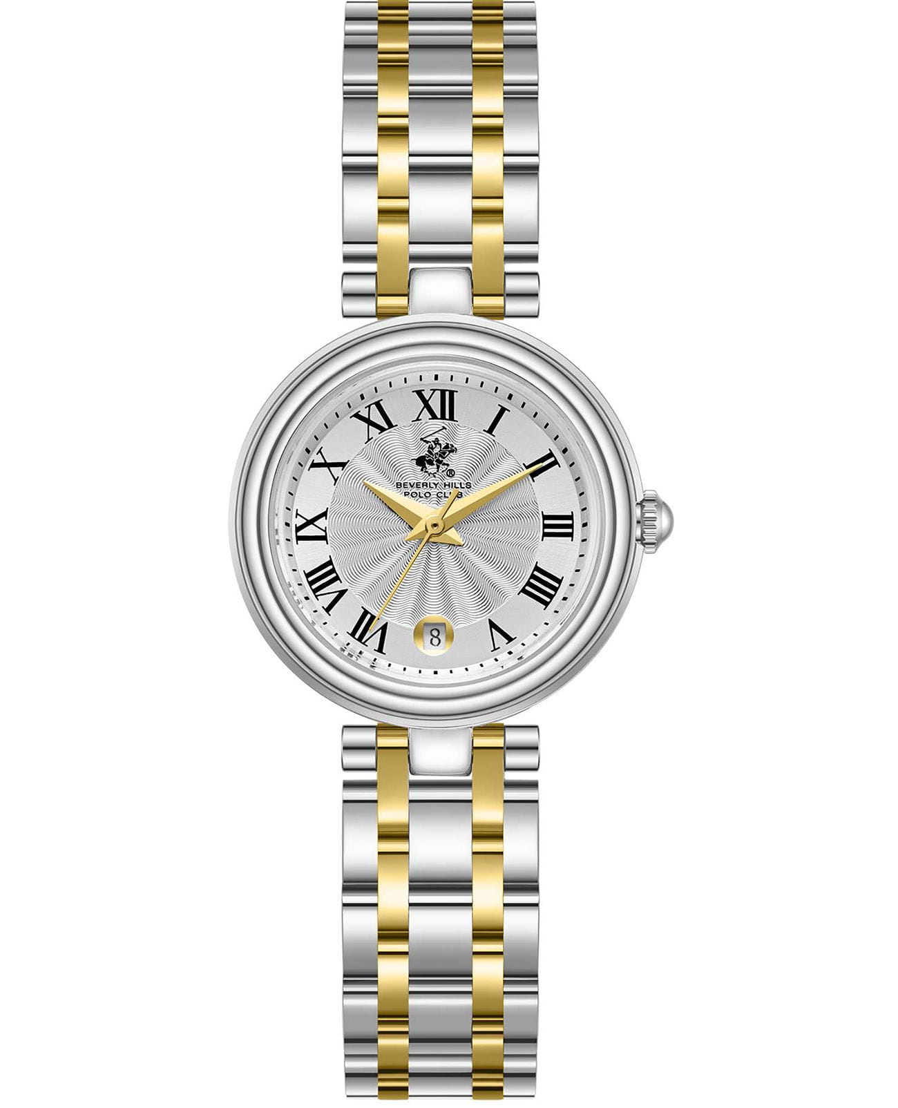 Женские кварцевые часы Beverly Hills Polo Club — это элегантный аксессуар. Корпус диаметром 26 мм выполнен из нержавеющей стали. Циферблат оформлен индексами и стрелками. Окошко даты расположено в положении 6 часов. Циферблат защищён минеральным стекломМинеральное стеклоМинеральное стекло представляет собой искусственно выращенный минерал кварца. Такое стекло отличается особой устойчивостью к повреждениям и царапинам. Уступает по некоторым качествам сапфировому стеклу.. Часы оснащены стальным браслетом с частичным IP-покрытиемIP-покрытиеМетод ионного напыления. Демонстрирует повышенную устойчивость к истиранию, окислению и химическим веществам. Под воздействием высокого давления и температуры около 1500°C молекулы металла надёжно соединяются с частицами корпуса часов. на застёжке «бабочка» с кнопкамиЗастёжка "бабочка"Такой вид застёжки дополняется предохранителями, помогающими избежать случайного раскрытия браслета. Обладают изящным исполнением. . Водонепроницаемость 30 м позволяет использовать часы в повседневных условиях. Идеальный выбор для тех, кто ценит стиль и качество.