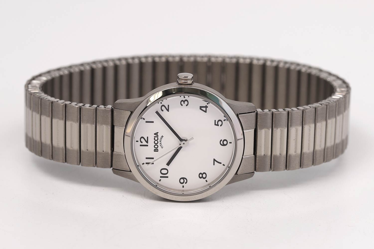 Женские наручные часы Boccia Titanium 3317-02 с надёжным кварцевым механизмом. Корпус и браслет часов изготовлены из титана. Сапфировое стеклоСапфировое стеклоПрочный и надёжный материал из кристалла сапфира синтетического происхождения, характеризующийся особой твёрдостью и устойчивостью к царапинам и повреждениям. устойчивое к мелким механическим повреждениям. Класс водозащиты: 100 метров, позволит плавать, нырять и заниматься другими водными видами спорта. Титановый браслет с частичным PVD-покрытиемPVDУльтратонкое покрытие наносится в технике вакуумного напыления, сочетает в себе нитрид титана особой прочности со слоем золота или оксида хрома. Несёт в себе декоративную или защитную функцию. на раскладной застёжкеРаскладная застёжкаТакой тип застёжки используется только на браслетах из металла. Она никогда не раскрывается полностью, происходит разделение на 2 и более частей. Раскладывающая застёжка снизит вероятность потери часов к минимуму.. Окошко даты находится в положении 3 часа. Стрелки с люминесцентным покрытиемЛюминесцентное покрытиеПозволяет считывать показания времени в темноте. Производители наносят на стрелки, часовые индексы, безель или поверхность циферблата светонакопительный состав, дающий холодное свечение..