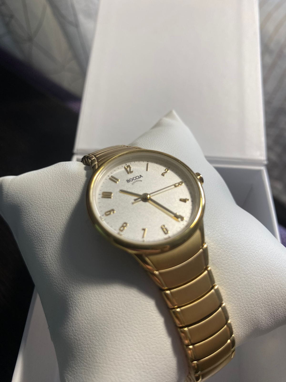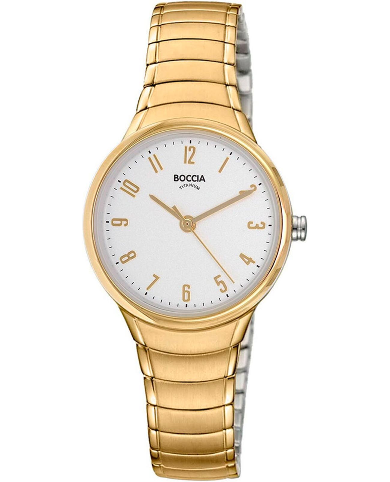 Женские немецкие наручные часы Boccia Titanium 3319-03 с надёжным кварцевым механизмом. Корпус и браслет часов изготовлены из титана с PVD-покрытиемPVDУльтратонкое покрытие наносится в технике вакуумного напыления, сочетает в себе нитрид титана особой прочности со слоем золота или оксида хрома. Несёт в себе декоративную или защитную функцию.. Сапфировое стеклоСапфировое стеклоПрочный и надёжный материал из кристалла сапфира синтетического происхождения, характеризующийся особой твёрдостью и устойчивостью к царапинам и повреждениям. устойчивое к мелким механическим повреждениям. Титановый браслет на раскладной застёжкеРаскладная застёжкаТакой тип застёжки используется только на браслетах из металла. Она никогда не раскрывается полностью, происходит разделение на 2 и более частей. Раскладывающая застёжка снизит вероятность потери часов к минимуму.. Класс водозащиты: 30 метров, позволит защитить корпус от случайных брызг или капель дождя.