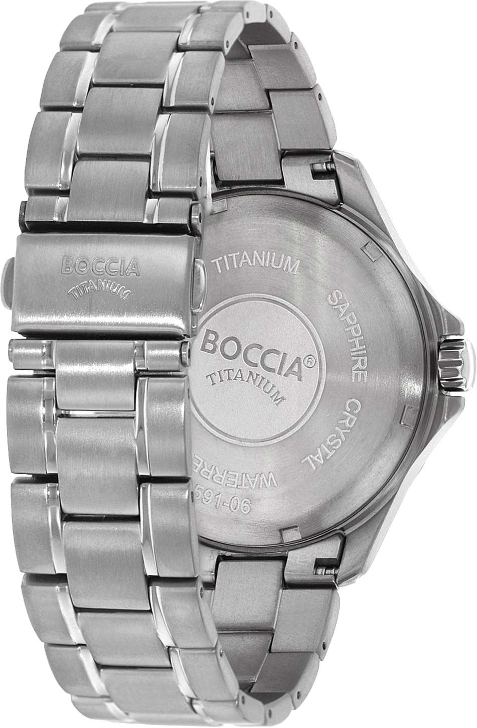 Мужские немецкие титановые часы Boccia Titanium Circle-Oval 3591-06, кварцевый механизм с высокой точностью. Сапфировое стеклоСапфировое стеклоПрочный и надёжный материал из кристалла сапфира синтетического происхождения, характеризующийся особой твёрдостью и устойчивостью к царапинам и повреждениям. устойчивое к появлению царапин, обладающее высокой прозрачностью. Корпус изготовлен из титана. Стрелки и метки с люминесцентным покрытиемЛюминесцентное покрытиеПозволяет считывать показания времени в темноте. Производители наносят на стрелки, часовые индексы, безель или поверхность циферблата светонакопительный состав, дающий холодное свечение.. Окошко даты в положении 3 часов. Класс водозащиты: 100 метров, позволит плавать, нырять и заниматься другими водными видами спорта. Браслет из титана на раскладной застёжкеРаскладная застёжкаТакой тип застёжки используется только на браслетах из металла. Она никогда не раскрывается полностью, происходит разделение на 2 и более частей. Раскладывающая застёжка снизит вероятность потери часов к минимуму..