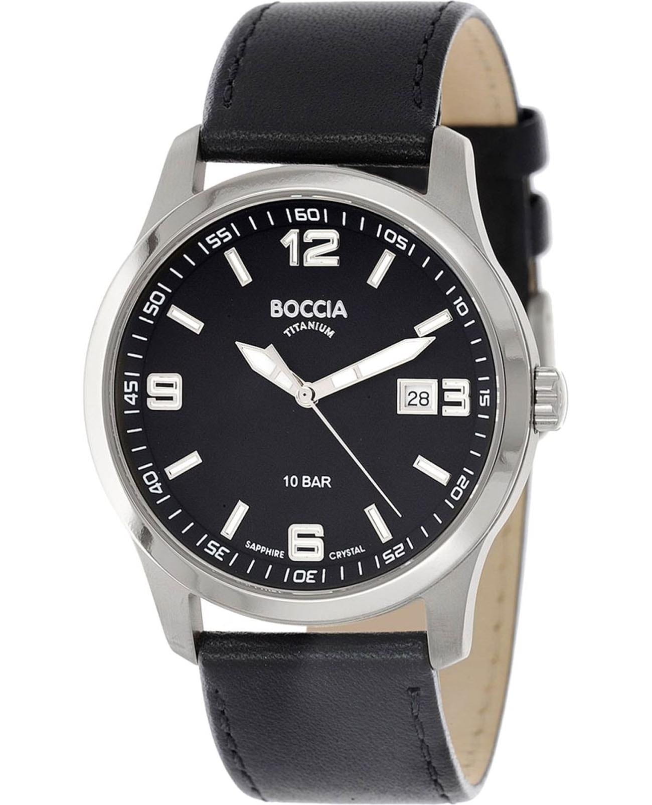Мужские наручные часы Boccia Titanium 3626-02 с надёжным кварцевым механизмом. Корпус часов изготовлен из титана. Сапфировое стеклоСапфировое стеклоПрочный и надёжный материал из кристалла сапфира синтетического происхождения, характеризующийся особой твёрдостью и устойчивостью к царапинам и повреждениям. устойчивое к мелким механическим повреждениям.. Класс водозащиты: 100 метров, позволит плавать, нырять и заниматься другими водными видами спорта. Окошко даты в положении 3 часа. Кожаный ремешок на стандартной застёжке. Стрелки и метки с люминесцентным покрытиемЛюминесцентное покрытиеПозволяет считывать показания времени в темноте. Производители наносят на стрелки, часовые индексы, безель или поверхность циферблата светонакопительный состав, дающий холодное свечение..