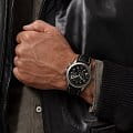 Класс водозащиты: 100 метров, позволит плавать, нырять и заниматься другими водными видами спорта. Корпус часов серебристого цвета, изготовлен из нержавеющей стали. Ремешок из телячьей кожи черного цвета с пряжкой из нержавеющей стали.