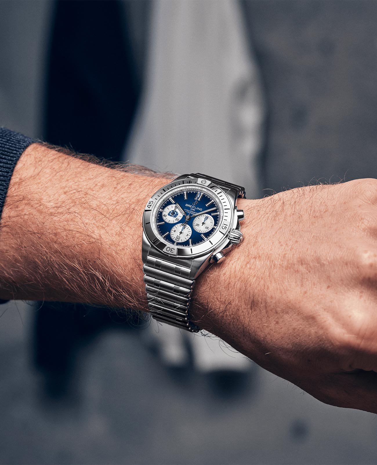 Лимитированные мужские швейцарские часы-хронографХронографФункция позволяет измерять отрезки времени с особой точностью: часы, минуты, секунды. Верным признаком хронографа является наличие на циферблате 3 дополнительных окошек-счётчиков. с секундомеромСекундомерСекундоме́р — прибор, способный измерять интервалы времени с точностью до долей секунды. Breitling Chronomat B01 42 AB0134A51C1A1, механический механизм (автоматический калибр) с высокой точностью. Основанный на хронографе Frecce Tricolori, который был разработан и выпущен в 1983 году в сотрудничестве со знаменитой итальянской авиационной эскадрильей, Chronomat стильно отпраздновал столетие Breitling и ознаменовал возвращение механическому хронографу его законного места в бренде, который построил свою мировую репутацию на этих невероятных часах. Сапфировое стеклоСапфировое стеклоПрочный и надёжный материал из кристалла сапфира синтетического происхождения, характеризующийся особой твёрдостью и устойчивостью к царапинам и повреждениям. устойчивое к появлению царапин, обладающее высокой прозрачностью. Класс водозащиты: 200 метров, позволит плавать, нырять и заниматься другими водными видами спорта. Корпус и браслет часов изготовлены из нержавеющей стали. Часы имеют сертификат COSCСертификат COSCОфициальный сертификат, подтверждающий то, что часы ходят с особо высокой точностью. Для получения документа часы подвергаются тестовым испытаниям, разработанным швейцарским институтом тестирования хронометров COSC. Допустимая норма для механических часов -4/+6 секунд в день, для кварцевых моделей +/- 0,07 секунд в день.. Стрелки и метки с люминесцентным покрытиемЛюминесцентное покрытиеПозволяет считывать показания времени в темноте. Производители наносят на стрелки, часовые индексы, безель или поверхность циферблата светонакопительный состав, дающий холодное свечение.. Шкала тахиметраТахиметрРазмеченная шкала, располагается на ободке или безеле часов. Тахиметр позволяет рассчитать скорость на определённом участке пути, расстояние измеряется в километрах или милях. на циферблате. Окошко даты находится в положении 6 часов. Браслет с застёжкой-бабочкой с кнопкамиЗастёжка "бабочка"Такой вид застёжки дополняется предохранителями, помогающими избежать случайного раскрытия браслета. Обладают изящным исполнением. .