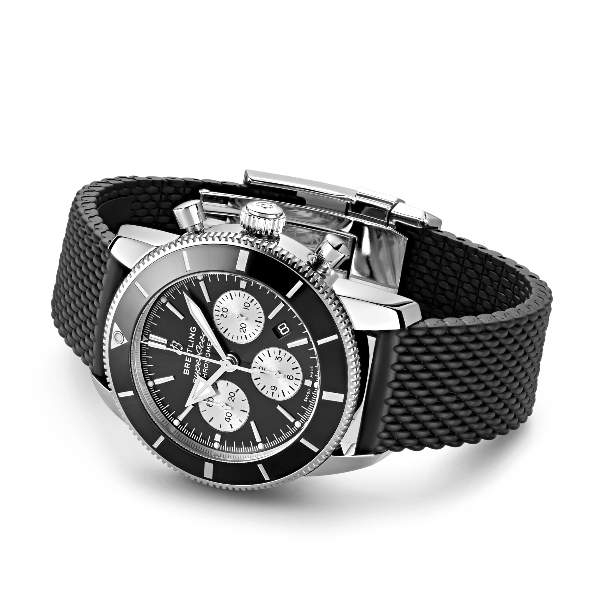 Покупатель может выбрать одну из понравившихся ему версий с циферблатом черного, синего, серебристого или зеленого цвета. Модель предлагается в комплекте с плетеным браслетом или каучуковым ремешком с узором в виде плетения с раскладной застежкой. Внутри корпуса спрятан калибр собственной разработки Breitling Manufacture Caliber 01, сертифицированный Швейцарским институтом официального тестирования хронометров (COSC).