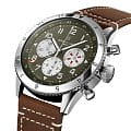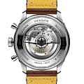 На массивном корпусе диаметром 46 мм напротив метки «3 часа» выделяется крупная заводная головка. Рифление на безеле обеспечивает надежный захват, а отстрочка на ремешках из телячьей кожи напоминает отделку классического летного снаряжения.