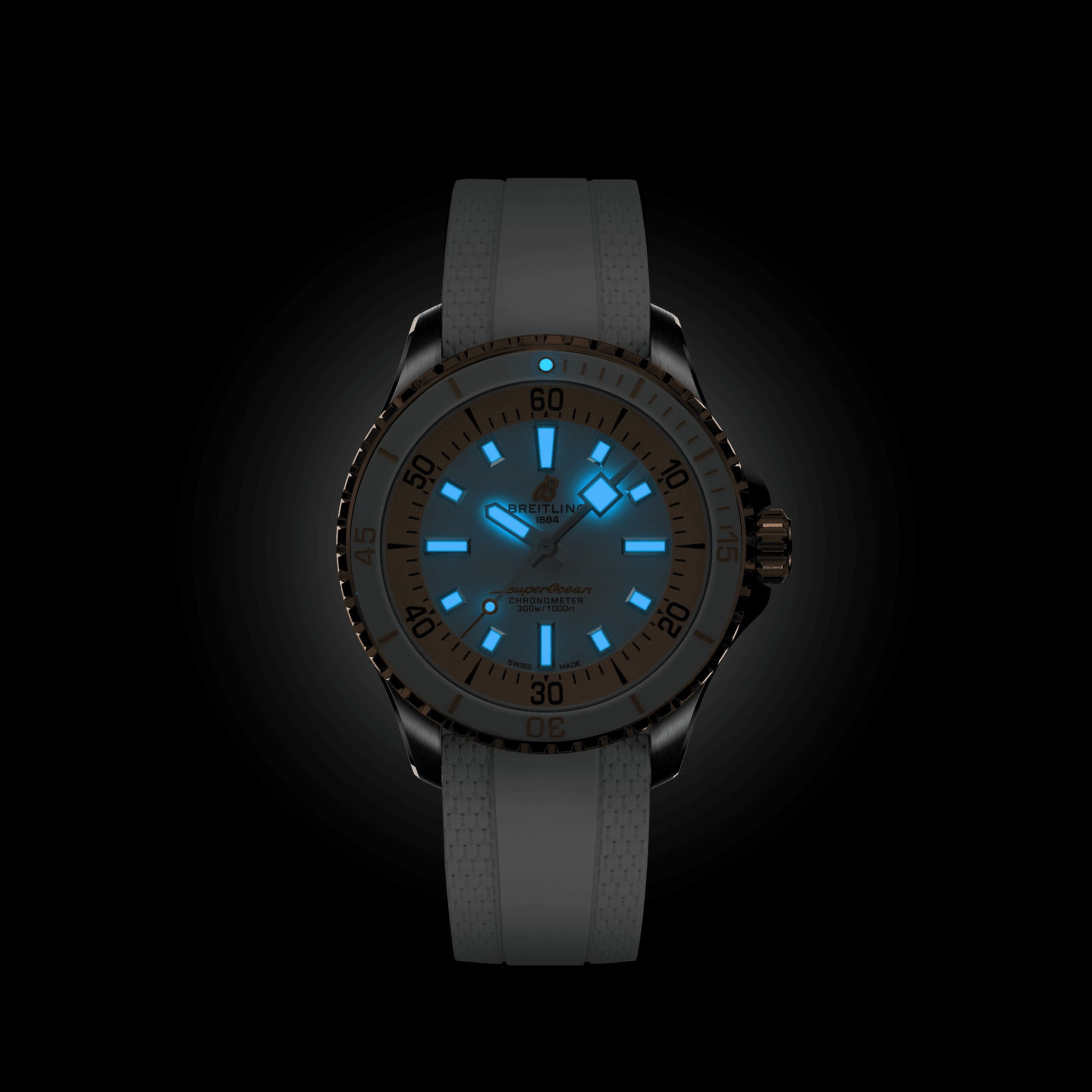 . Каучуковый ремешок на раскладной застёжкеРаскладная застёжкаТакой тип застёжки используется только на браслетах из металла. Она никогда не раскрывается полностью, происходит разделение на 2 и более частей. Раскладывающая застёжка снизит вероятность потери часов к минимуму.. Новый Superocean повторяет знаменитые дизайнерские коды Slow Motion, добавляя при этом современные элементы, такие как безель с керамической вставкой и яркие циферблаты. Стрелки и метки с люминесцентным покрытиемЛюминесцентное покрытиеПозволяет считывать показания времени в темноте. Производители наносят на стрелки, часовые индексы, безель или поверхность циферблата светонакопительный состав, дающий холодное свечение.. Вращающийся стальной безельБезельВнешний ободок, закрепляющий стекло. В спортивных часах так называется поворотное кольцо с делениями на циферблате, выполняет роль таймера – замеряет отрезки времени на шкале. Неподвижный безель – элемент декора. Однонаправленно вращающийся безель на дайверских часах позволяет фиксировать моменты погружения и выныривания на поверхность. с люминесцентным покрытием Superluminova из нержавеющей стали и керамики, защищенный от царапин, никогда не изнашивается и не выцветает. Лучше всего то, что это больше не просто часы для дайвинга — занимайтесь с ними серфингом, плавайте с ними, заходите с ними в пляжный бар, а затем надевайте их на ужин. Superocean идеально сочетает ностальгию по своему наследию со свежим внешним видом.