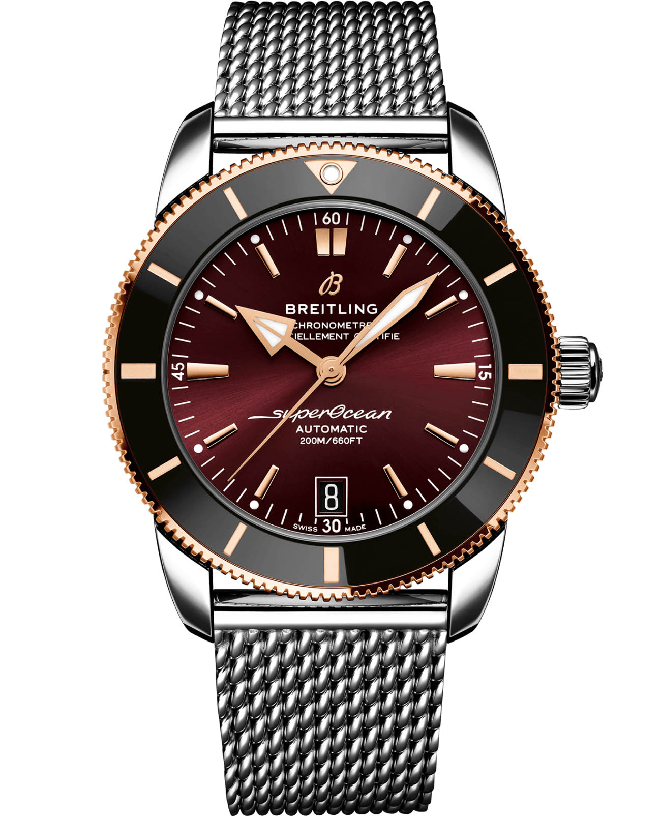 . Часы Superocean Heritage, оснащенные культовыми стрелками треугольной формы, а также однонаправленным безелемБезельВнешний ободок, закрепляющий стекло. В спортивных часах так называется поворотное кольцо с делениями на циферблате, выполняет роль таймера – замеряет отрезки времени на шкале. Неподвижный безель – элемент декора. Однонаправленно вращающийся безель на дайверских часах позволяет фиксировать моменты погружения и выныривания на поверхность. с полированным керамическим кольцом, представляют собой элегантные часы для дайверов. Часы Superocean Heritage оснащены калибром Breitling Manufacture B20, сертифицированным COSCСертификат COSCОфициальный сертификат, подтверждающий то, что часы ходят с особо высокой точностью. Для получения документа часы подвергаются тестовым испытаниям, разработанным швейцарским институтом тестирования хронометров COSC. Допустимая норма для механических часов -4/+6 секунд в день, для кварцевых моделей +/- 0,07 секунд в день. хронометром на базе Tudor Caliber MT5612.