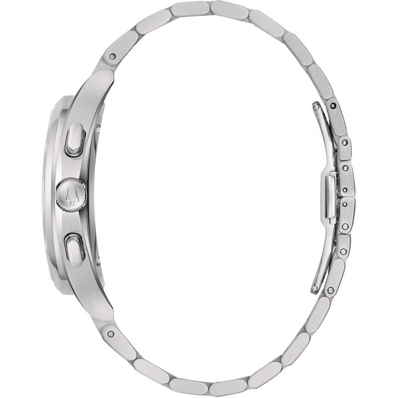 Мужские кварцевые часы-хронографХронографФункция позволяет измерять отрезки времени с особой точностью: часы, минуты, секунды. Верным признаком хронографа является наличие на циферблате 3 дополнительных окошек-счётчиков. Bulova CURV 96A298 – отражающий идеальное сочетание современного дизайна, надёжности и функциональности. Элегантный облик станет превосходным завершением образа, наделив его индивидуальным характером. Корпус из нержавеющей стали серебристого цвета, диаметром 44 мм идеально сбалансирован и элегантен. Защиту циферблата обеспечивает прочное сапфировое стеклоСапфировое стеклоПрочный и надёжный материал из кристалла сапфира синтетического происхождения, характеризующийся особой твёрдостью и устойчивостью к царапинам и повреждениям. с антибликовым покрытиемАнтибликовое покрытиеСлой оксида металла в 0,13-0,3 микрон, благодаря которому стекло часов не бликует и не отражает свет. Антибликовое покрытие уменьшает отражение света в 10 раз, обеспечивая отличную читаемость показателей циферблата. гарантирующее четкость показаний. Центральные часовая и минутная стрелки, секундная стрелка вынесена на малый циферблат. Стальной браслет на застёжке-бабочке с кнопкамиЗастёжка "бабочка"Такой вид застёжки дополняется предохранителями, помогающими избежать случайного раскрытия браслета. Обладают изящным исполнением. обеспечивает комфортное ношение. Водозащита 30 метров позволит защитить корпус от случайных брызг или капель дождя. Стрелки с люминесцентным покрытиемЛюминесцентное покрытиеПозволяет считывать показания времени в темноте. Производители наносят на стрелки, часовые индексы, безель или поверхность циферблата светонакопительный состав, дающий холодное свечение. позволяющие легко определять время даже в темноте. Эта модель – отличный выбор для тех, кто ищет сочетание стиля, качества и функциональности. Часы станут не только полезным аксессуаром, но и выразительным элементом вашего имиджа.