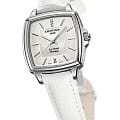 Модель с квадратным корпусом предстаёт в элегантном стиле. Циферблат с перламутровой вставкой украшен 3 бриллиантами. Работу часов обеспечивает швейцарский кварцевый механизм Precidrive™Precidrive™Инновационный кварцевый механизм Certina. Часы, оснащённые этим швейцарским калибром, приравниваются к точности к сертифицированным хронометрам, точность хода составляет +/-10 секунд в год.. Сапфировое стекло имеет антибликовую обработку. Белый ремешок из натуральной кожи.