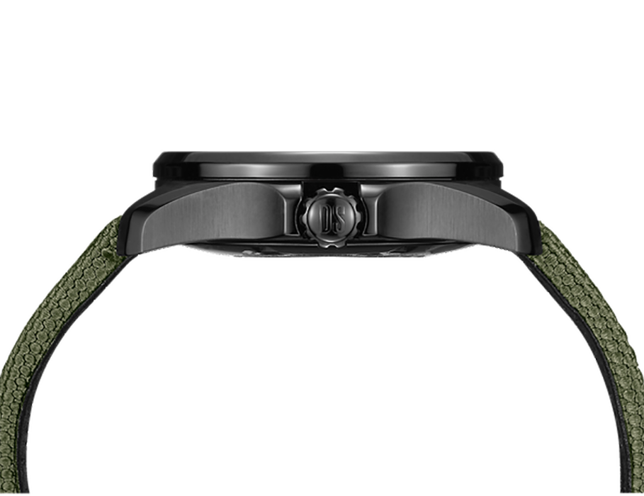 Брендовый трёхстрелочник в спортивном стиле идеально подходит как к дорогому костюму, так и к повседневной рубашке. Тканевый ремешок в защитном цвете хаки впишется в любой образ. Ударопрочный корпусУдаропрочный корпусМеханизм заключён в корпус, выполненный из современных материалов, устойчивых к ударам, механическим повреждениям и падению с высоты: инновационный пластик, карбон, нержавеющая сталь, титан. из стали с PVD-покрытиемPVDУльтратонкое покрытие наносится в технике вакуумного напыления, сочетает в себе нитрид титана особой прочности со слоем золота или оксида хрома. Несёт в себе декоративную или защитную функцию. защищает от повреждений швейцарский автоматический калибр ETA Powermatic 80Powermatic 80Эксклюзивный калибр от швейцарской компании ETA с увеличенным запасом хода до 80 часов за счёт удлинённой заводной пружины. Характеризуется улучшенной системой спуска со сниженным трением. с увеличенным 80-часовым резервом хода. Водостойкость 200 метров. Завинчивающиеся заводная головка с блокировкой и прозрачная задняя крышка. Двухстороннее антибликовое покрытие для стекла из сапфира. Концепция DS ConceptDS ConceptDouble Security Concept, обозначает двойную надёжность и безупречную точность часов Certina. Двойная система защиты подразумевает обеспечение максимальной устойчивости к ударам и высоких показателей водонепроницаемости.. Функция GMTGMTОтображение времени второго часового пояса.Такая функция особенно актуальна для путешественников и бизнесменов,которые общаются с людьми из разных стран,теперь вы всегда будете знать,какой час у вашего партнёра или близкого человека., апертура даты. Диаметр корпуса: 43,1 мм.