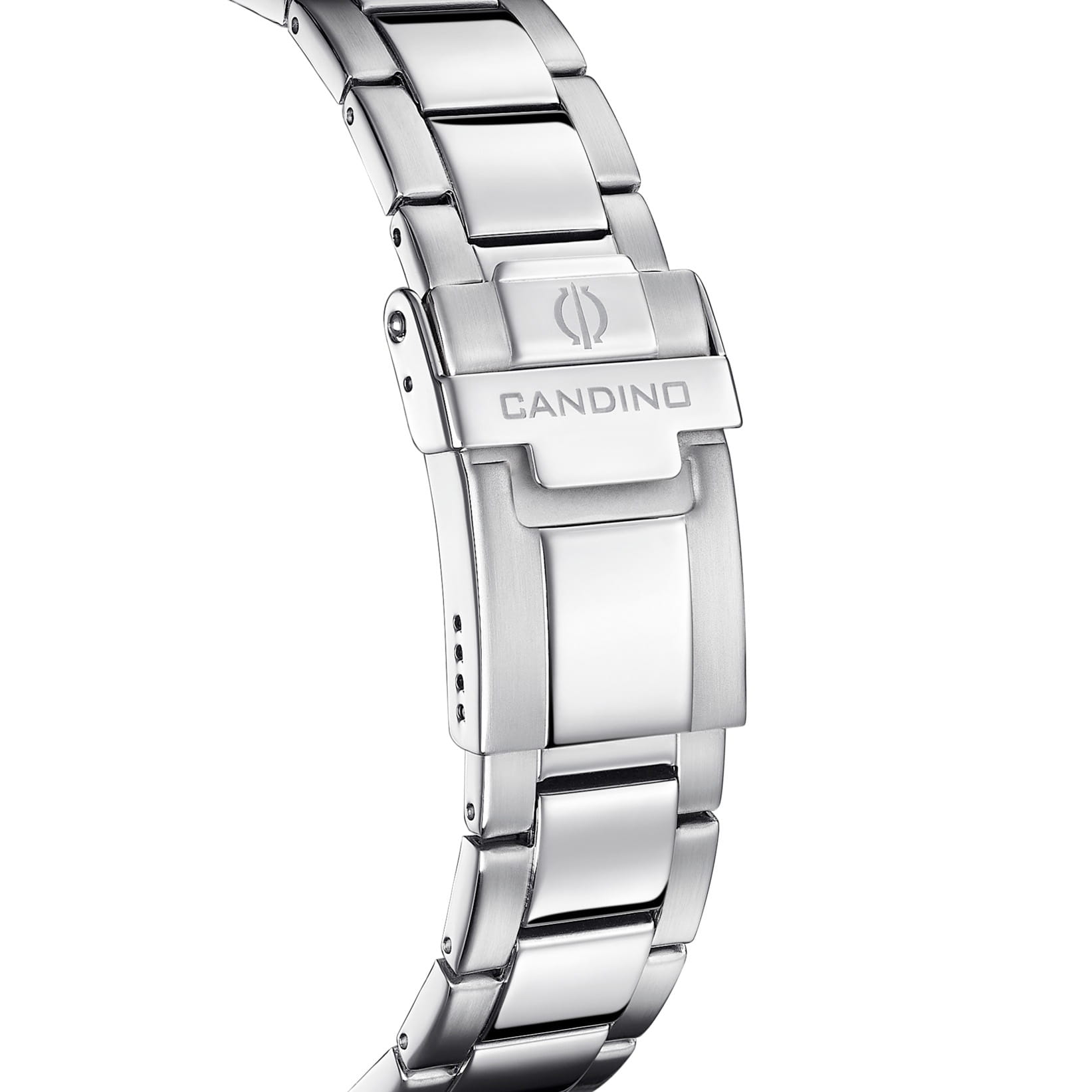 Мужские наручные часы-хронографХронографФункция позволяет измерять отрезки времени с особой точностью: часы, минуты, секунды. Верным признаком хронографа является наличие на циферблате 3 дополнительных окошек-счётчиков. Candino Gents Sport C4757/F сочетают в себе спортивный дизайн и надежность швейцарских технологий. Модель обладает круглым корпусом диаметром 45 мм, изготовленным из нержавеющей стали , что обеспечивает высокую устойчивость к коррозии и внешним воздействиям . Браслет выполнен из нержавеющей стали с раскладной застежкойРаскладная застёжкаТакой тип застёжки используется только на браслетах из металла. Она никогда не раскрывается полностью, происходит разделение на 2 и более частей. Раскладывающая застёжка снизит вероятность потери часов к минимуму., гарантирующей комфортное ношение и безопасность. Циферблат оснащен окном даты и функцией люминесцентного покрытияЛюминесцентное покрытиеПозволяет считывать показания времени в темноте. Производители наносят на стрелки, часовые индексы, безель или поверхность циферблата светонакопительный состав, дающий холодное свечение., что позволяет легко считывать показания времени даже в темноте . Для защиты используется сапфировое стеклоСапфировое стеклоПрочный и надёжный материал из кристалла сапфира синтетического происхождения, характеризующийся особой твёрдостью и устойчивостью к царапинам и повреждениям., обеспечивающее прочную защиту от царапин и долговечность . Часы работают на кварцевом механизме, проверенном годами качеством и точностью . Модель также является хронографом, оснащенным функцией секундомераСекундомерСекундоме́р — прибор, способный измерять интервалы времени с точностью до долей секунды., делая ее идеальной для активного образа жизни. Водонепроницаемость часов достигает 10 атмосфер (100 метров), что позволяет использовать их во время плавания и других водных видов спорта.