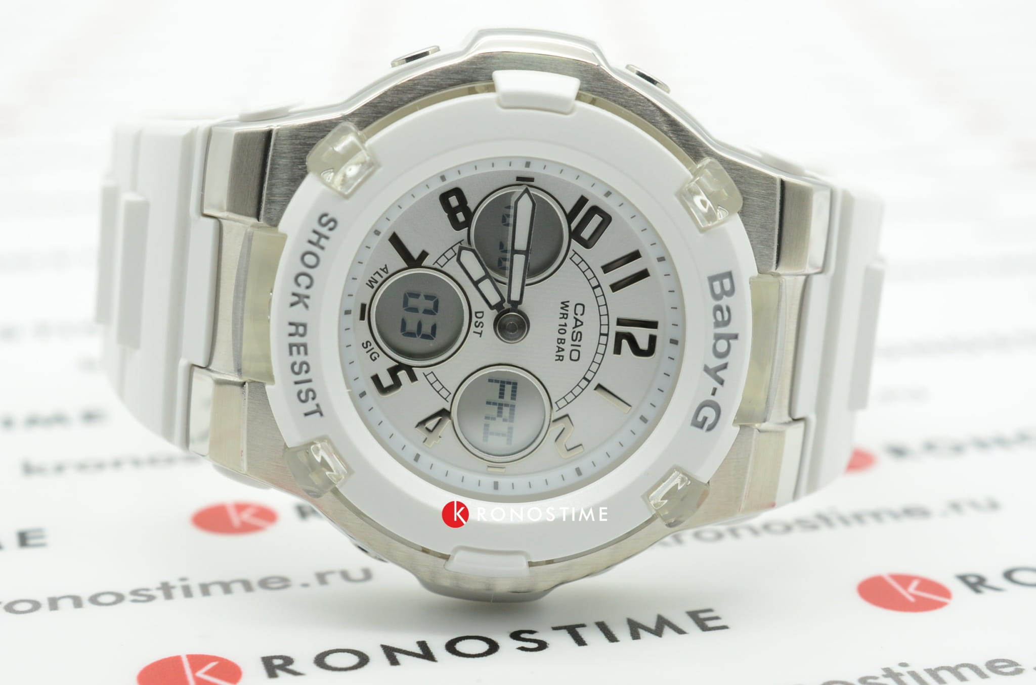Современные надежные японские наручные женские часы. Точность хода: не хуже +/-15 секунд в месяц. Светодиодная подсветка с функцией автоматической подсветки при наклоне часов. Функция секундомера. Таймер обратного отсчета. 5 ежедневных будильников. Автоматический календарь. Функция мирового времени. Отображение времени в 12-часовом или 24-часовом формате. Особая ударопрочная конструкция защищает от ударов и вибрации. Минеральное стекло устойчивое к возникновению царапин. Ремешок из белого полимерного материала. Натуральный полимерный материал является идеальным для изготовления ремешка благодаря своей чрезвычайной прочности и гибкости. Корпус выполнен из высококачественного пластика. Задняя крышка стальная. Водонепроницаемость (10 Бар).
