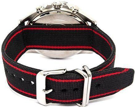 Спортивная модель является воплощением автогоночного дизайна, часы могут стать ключевой деталью образа. Главной особенностью стал комфортный текстильный ремешок, материал не вызывает аллергии на чувствительной коже. Ударопрочный корпусУдаропрочный корпусМеханизм заключён в корпус, выполненный из современных материалов, устойчивых к ударам, механическим повреждениям и падению с высоты: инновационный пластик, карбон, нержавеющая сталь, титан. изготовлен из нержавеющей стали 316L, материал устойчив к царапинам и ударам. Японский кварцевый механизм работает от батарейки, срок службы которой рассчитан на 3 года. Синий алюминиевый безельБезельВнешний ободок, закрепляющий стекло. В спортивных часах так называется поворотное кольцо с делениями на циферблате, выполняет роль таймера – замеряет отрезки времени на шкале. Неподвижный безель – элемент декора. Однонаправленно вращающийся безель на дайверских часах позволяет фиксировать моменты погружения и выныривания на поверхность.. Закаленное минеральное стекло. Люминесцентная подсветка NeobriteПодсветка NeobriteИспользование светонакопительных составов на основе сульфида цинка или алюмината стронция, яркий свет можно наблюдать на протяжении 6-10 часов после «зарядки» часов около источника света.. Водонепроницаемость 10 бар. Заводная головка с системой защиты. Секундомер, календарь, хронографХронографФункция позволяет измерять отрезки времени с особой точностью: часы, минуты, секунды. Верным признаком хронографа является наличие на циферблате 3 дополнительных окошек-счётчиков.. Габариты: 47 x 53 x 11,8 мм.