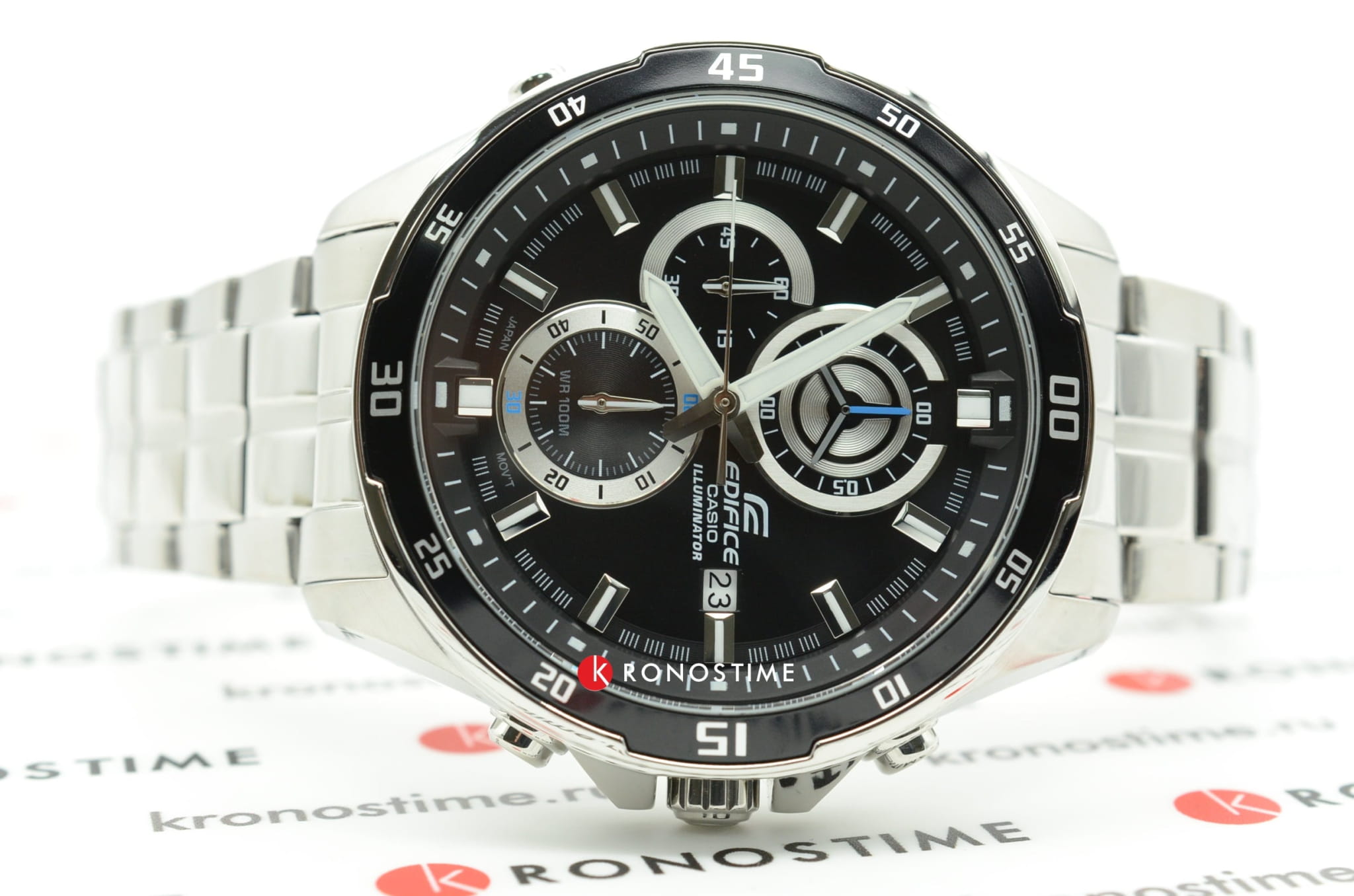 Японский мужской хронографХронографФункция позволяет измерять отрезки времени с особой точностью: часы, минуты, секунды. Верным признаком хронографа является наличие на циферблате 3 дополнительных окошек-счётчиков. из коллекции Edifice отражает дух высоких скоростей, брендовая модель поможет подчеркнуть индивидуальный образ.