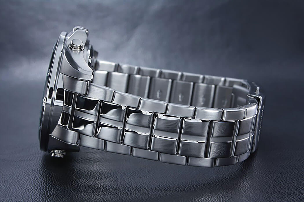 Практичный и надёжный аксессуар стильно смотрится на запястье и подходит к любой одежде. Чёрный циферблат с голубыми деталями дополнен контрастными стрелками, часовыми метками и счётчиками, что обеспечивает идеальную читаемость показателей. Особую привлекательность представляет собой безельБезельВнешний ободок, закрепляющий стекло. В спортивных часах так называется поворотное кольцо с делениями на циферблате, выполняет роль таймера – замеряет отрезки времени на шкале. Неподвижный безель – элемент декора. Однонаправленно вращающийся безель на дайверских часах позволяет фиксировать моменты погружения и выныривания на поверхность. с IP-покрытиемIP-покрытиеМетод ионного напыления. Демонстрирует повышенную устойчивость к истиранию, окислению и химическим веществам. Под воздействием высокого давления и температуры около 1500°C молекулы металла надёжно соединяются с частицами корпуса часов. чёрного цвета. Высокоточный кварцевый механизм Miyota с точностью хода +/- 15 сек/мес. Надёжный стальной браслет. Закаленное минеральное стекло. Люминесцентная подсветкаЛюминесцентное покрытиеПозволяет считывать показания времени в темноте. Производители наносят на стрелки, часовые индексы, безель или поверхность циферблата светонакопительный состав, дающий холодное свечение.. Водонепроницаемость до 100 метров. Отображение даты, секундомер. Габариты: 47,2 x 54 x 13,9 мм.