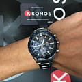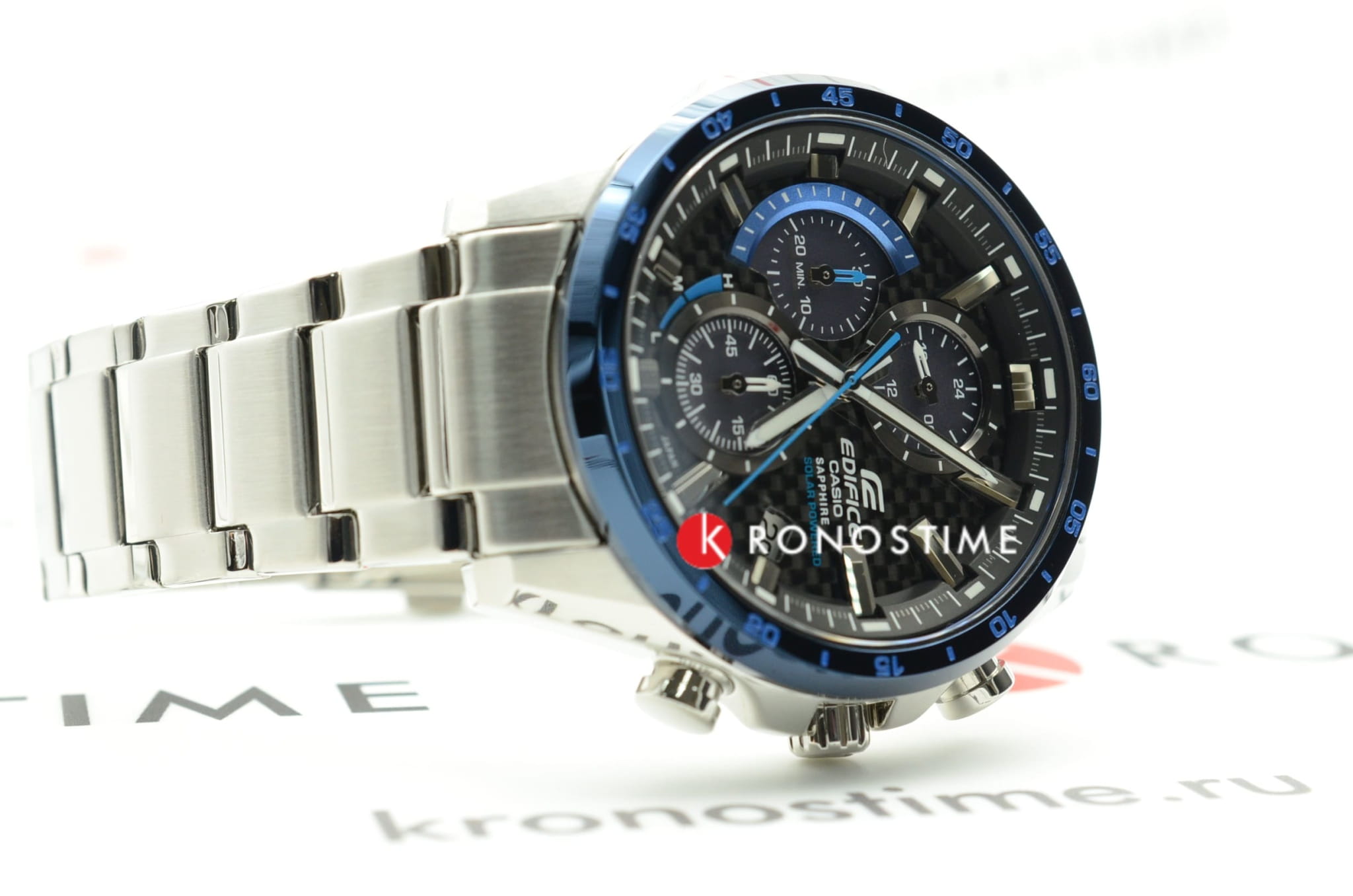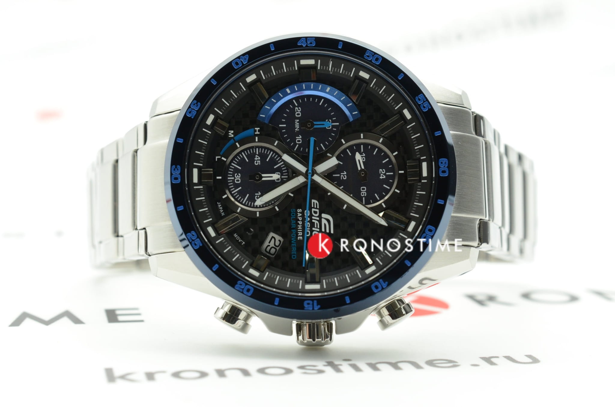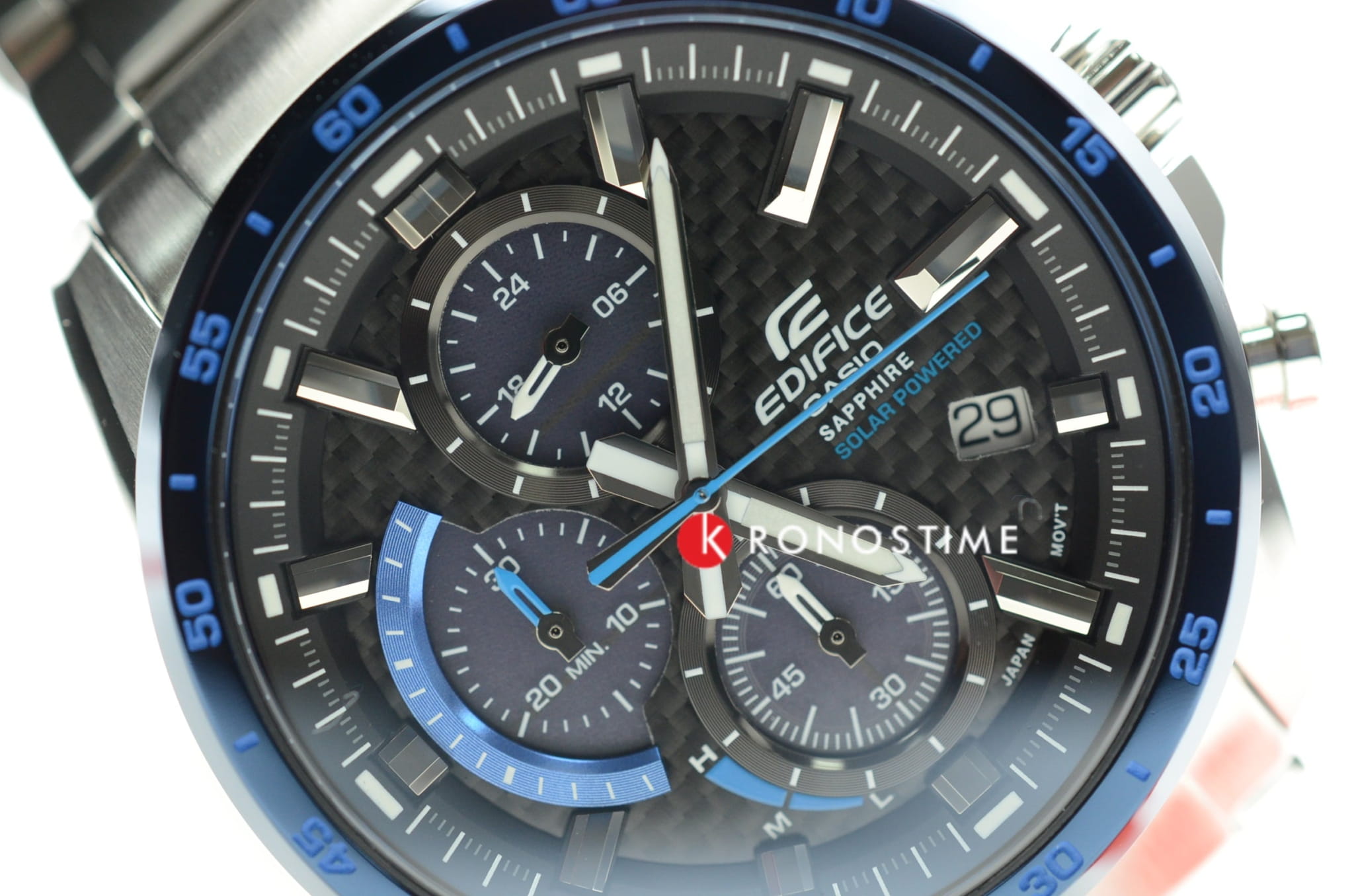 Габаритные наручные часы станут ключевой деталью для повседневного образа, привлекательно выглядят элементы голубого и синего цвета. Интерес вызывает необычный циферблат, имеющий карбоновую текстуру, переплетённые волокна образуют оригинальный узор. Ударопрочный корпусУдаропрочный корпусМеханизм заключён в корпус, выполненный из современных материалов, устойчивых к ударам, механическим повреждениям и падению с высоты: инновационный пластик, карбон, нержавеющая сталь, титан. и браслет сделаны из стали 316L с антикоррозионными свойствами, за счёт чего часы надолго сохранят безупречный внешний вид. Модель получает питание от солнечного цвета , состояние заряда можно отслеживать благодаря наличию особого индикатора. БезельБезельВнешний ободок, закрепляющий стекло. В спортивных часах так называется поворотное кольцо с делениями на циферблате, выполняет роль таймера – замеряет отрезки времени на шкале. Неподвижный безель – элемент декора. Однонаправленно вращающийся безель на дайверских часах позволяет фиксировать моменты погружения и выныривания на поверхность. с синим IP-покрытиемIP-покрытиеМетод ионного напыления. Демонстрирует повышенную устойчивость к истиранию, окислению и химическим веществам. Под воздействием высокого давления и температуры около 1500°C молекулы металла надёжно соединяются с частицами корпуса часов.. Закручивающаяся крышка с резьбовым соединением. Водонепроницаемость 100 метров. Подсветка NeobriteПодсветка NeobriteИспользование светонакопительных составов на основе сульфида цинка или алюмината стронция, яркий свет можно наблюдать на протяжении 6-10 часов после «зарядки» часов около источника света.. Сапфировое стекло. Секундомер, хронографХронографФункция позволяет измерять отрезки времени с особой точностью: часы, минуты, секунды. Верным признаком хронографа является наличие на циферблате 3 дополнительных окошек-счётчиков., апертура даты. Габариты: 51,5 x 47,6 x 12 мм.