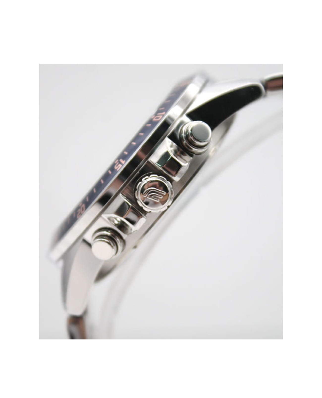 Мужские часы-хронографХронографФункция позволяет измерять отрезки времени с особой точностью: часы, минуты, секунды. Верным признаком хронографа является наличие на циферблате 3 дополнительных окошек-счётчиков. Casio Edifice EFV-540D-2A, кварцевый механизм с высокой точностью. Минеральное стеклоМинеральное стеклоМинеральное стекло представляет собой искусственно выращенный минерал кварца. Такое стекло отличается особой устойчивостью к повреждениям и царапинам. Уступает по некоторым качествам сапфировому стеклу. устойчивое к появлению царапин, обладающее высокой прозрачностью. СекундомерСекундомерСекундоме́р — прибор, способный измерять интервалы времени с точностью до долей секунды. с точностью показаний 1/10с и временем измерения 1ч. Корпус изготовлен из нержавеющей стали. БезельБезельВнешний ободок, закрепляющий стекло. В спортивных часах так называется поворотное кольцо с делениями на циферблате, выполняет роль таймера – замеряет отрезки времени на шкале. Неподвижный безель – элемент декора. Однонаправленно вращающийся безель на дайверских часах позволяет фиксировать моменты погружения и выныривания на поверхность. изготовлен из стали с IP-покрытиемIP-покрытиеМетод ионного напыления. Демонстрирует повышенную устойчивость к истиранию, окислению и химическим веществам. Под воздействием высокого давления и температуры около 1500°C молекулы металла надёжно соединяются с частицами корпуса часов.. Светонакопительное покрытие NeobriteПодсветка NeobriteИспользование светонакопительных составов на основе сульфида цинка или алюмината стронция, яркий свет можно наблюдать на протяжении 6-10 часов после «зарядки» часов около источника света. продолжает светиться в темноте даже после непродолжительного пребывания на свету. Окошко даты находится в положении 4 часов. Класс водозащиты: 100 метров, позволит плавать, нырять и заниматься другими водными видами спорта. Заводная головка с защитой. Кожаный ремешок на стандартной застежке. Стальной браслет на раскладной застёжкеРаскладная застёжкаТакой тип застёжки используется только на браслетах из металла. Она никогда не раскрывается полностью, происходит разделение на 2 и более частей. Раскладывающая застёжка снизит вероятность потери часов к минимуму..