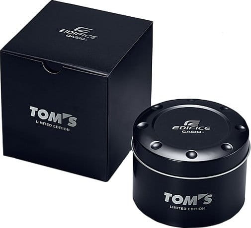 Модель является коллаборацией бренда Edifice с легендарной японской гоночной командой TOM'S. Как и все коллаборации модель поставляется в коробке с собственным уникальным дизайном, а циферблат часов венчает логотип TOM'S.