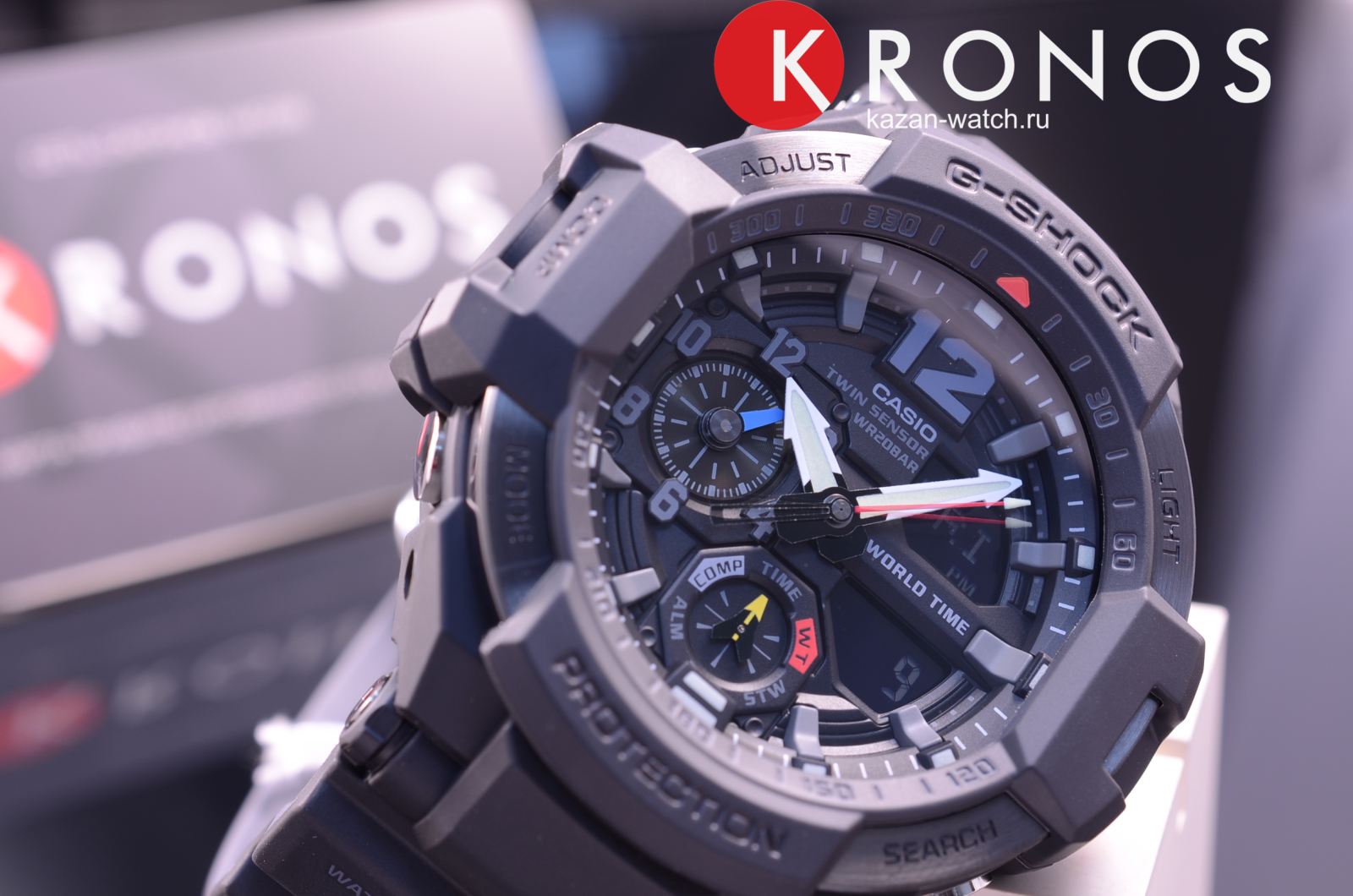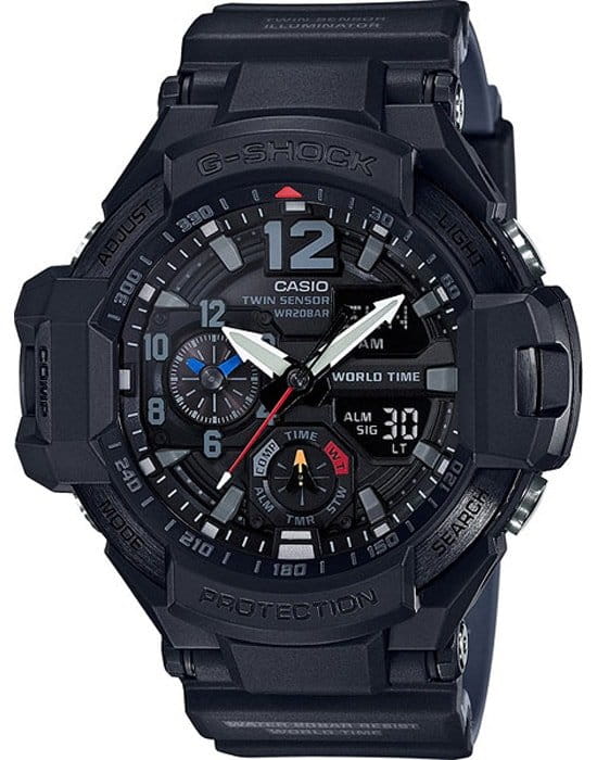 Компания Casio выпустила новинкубренда G-SHOCK, созданную на основе модели GA-1100. Эти часы- новое поколение часов, разработанных специально для пилотов. Главной особенностью GA-1100 является уникальная функция управления мировым временем - часы способны отображать значения времени в двух городах одновременно, с помощью стрелки минут, часов и на встроенном дисплее. Часы просты в управлении и позволяют одним нажатием кнопки узнать время отлета и предполагаемого прибытия в пункт назначения, отследить температуру в кабине самолета и на взлетно-посадочной полосе и определить текущее месторасположение по встроенному компасу. Помимо этого, модель GA-1100 оснащена сверхъяркой подсветкой LED, что позволяет использовать часы вне зависимости от степени освещенности помещения.