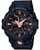 Стильный аксессуар чёрного цвета имеет привлекательные акценты в цвете розового золота, что смягчает его брутальный вид. Часы с крупными стрелками и метками обеспечивают идеальную читаемость показателей времени, кнопка подсветки для удобства вынесена в нижнюю часть ударопрочного корпусаУдаропрочный корпусМеханизм заключён в корпус, выполненный из современных материалов, устойчивых к ударам, механическим повреждениям и падению с высоты: инновационный пластик, карбон, нержавеющая сталь, титан.. Он, как и ремешок, выполнен из полимерного материала, выдерживающим удары и падения. Японский кварцевый механизм получает питание от батарейки, отличающейся повышенным сроком службы до 5 лет. Закаленное минеральное стекло. Яркая светодиодная подсветкаСветодиодная подсветкаСветодиодная или LED-подсветка обеспечивает появление яркого холодного свечения за счёт LED-элементов - маленьких лампочек. Они потребляют минимальное количество энергии, чаще всего можно встретить 1 светодиод, в нижней части циферблата.. Водозащита 200 метров. Функция перемещения стрелок для быстрого доступа к данным малых счётчиков. Таймер обратного отсчёта, UTCUTCВсемирное кординационное время, не имеющее привязки к географическому положению Гринвича, основывается на атомном отсчёте времени. Регулировка времени осуществляется более точно, чем устаревшее GMT.