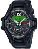 Модель линейки Gravitymaster привлекает необычным оформлением, дисплей напоминает кабину пассажирского самолёта. Часы в пилотной тематике отличаются цифровым дисплеем с широким углом обзора и самым высоким разрешением среди G-Shock, циферблатом с крупной индикацией времени. Авиаторской фишкой стал таймер обратного отсчёта, позволяющий выбрать число, месяц или год, запланированному событию можно дать название. Противоударный корпусУдаропрочный корпусМеханизм заключён в корпус, выполненный из современных материалов, устойчивых к ударам, механическим повреждениям и падению с высоты: инновационный пластик, карбон, нержавеющая сталь, титан. из полимерного материала. Стальной безельБезельВнешний ободок, закрепляющий стекло. В спортивных часах так называется поворотное кольцо с делениями на циферблате, выполняет роль таймера – замеряет отрезки времени на шкале. Неподвижный безель – элемент декора. Однонаправленно вращающийся безель на дайверских часах позволяет фиксировать моменты погружения и выныривания на поверхность. c IP-покрытиемIP-покрытиеМетод ионного напыления. Демонстрирует повышенную устойчивость к истиранию, окислению и химическим веществам. Под воздействием высокого давления и температуры около 1500°C молекулы металла надёжно соединяются с частицами корпуса часов.. Питание от солнечной батареи . Индикатор состояния элемента питания. Функция перемещения стрелок для удобного просмотра всех показателей. Синхронизация Bluetooth 4.0BluetoothСовременная технология, позволяющая синхронизировать часы с телефоном и переносить данные. Часы с Bluetooth расширяют возможности вашего смартфона и делают его использование ещё более удобным.. Минеральное стекло. Водостойкость 20 бар. СветодиоднаяСветодиодная подсветкаСветодиодная или LED-подсветка обеспечивает появление яркого холодного свечения за счёт LED-элементов - маленьких лампочек. Они потребляют минимальное количество энергии, чаще всего можно встретить 1 светодиод, в нижней части циферблата. подсветка и покрытие стрелок NeobriteПодсветка NeobriteИспользование светонакопительных составов на основе сульфида цинка или алюмината стронция, яркий свет можно наблюдать на протяжении 6-10 часов после «зарядки» часов около источника света.. Поиск телефона, мировое времяМировое время Полезное часовое усложнение, отображающее время в основных городах и известных областях по всему миру, оно связано с часовыми поясами, удобно для путешественников и бизнесменов. , секундомер, будильник, координированное время UTCUTCВсемирное кординационное время, не имеющее привязки к географическому положению Гринвича, основывается на атомном отсчёте времени. Регулировка времени осуществляется более точно, чем устаревшее GMT.