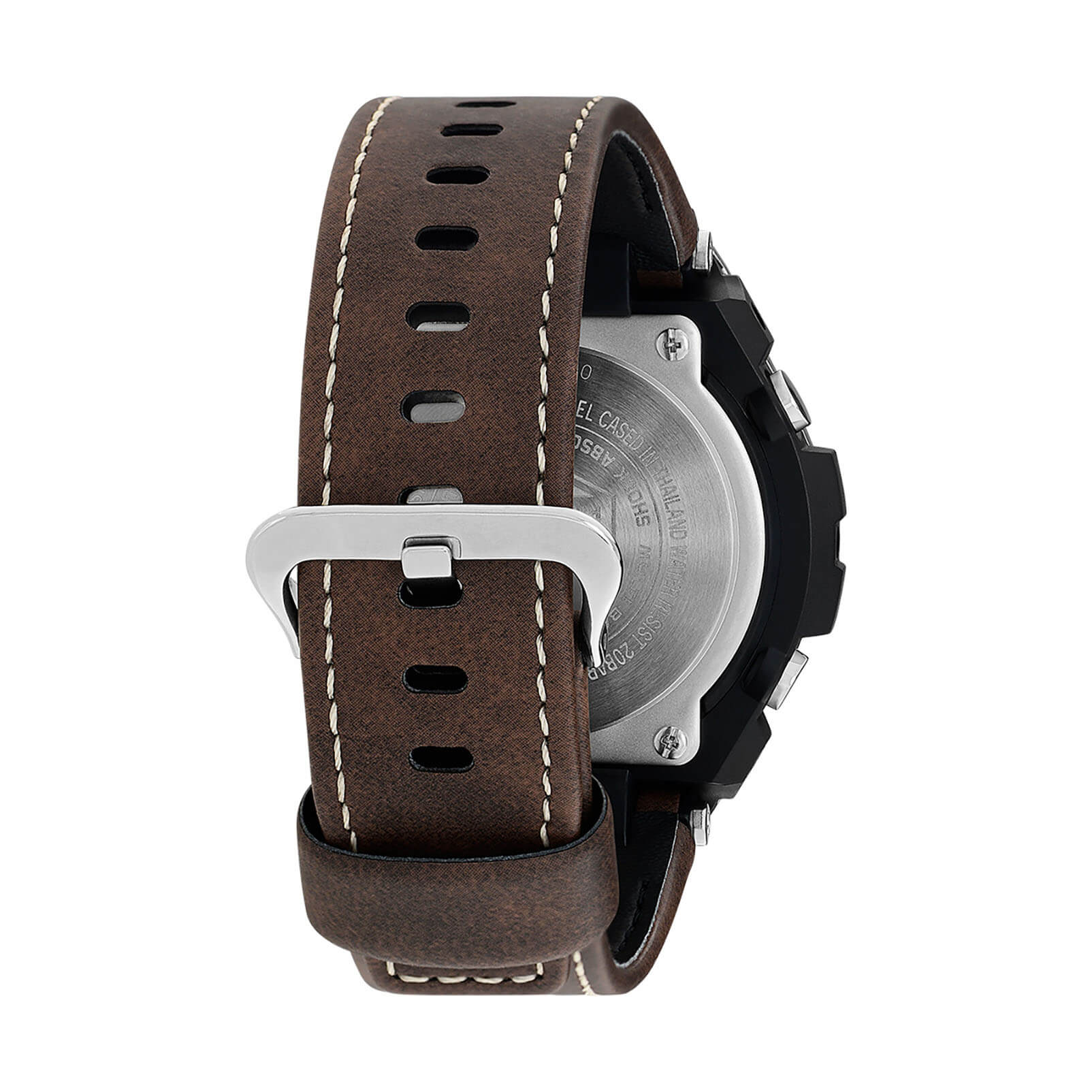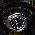 Тёмный циферблат имеет крупную индикацию времени, что обеспечивает отличную читаемость показателей даже при беглом взгляде. Особенностью аксессуара стал ремешок из инновационного материала Tough Leather, разработанный инженерами Casio. Он имеет сходство с кожей, но обладает большей прочностью и устойчивостью к износу. Наручные часы могут похвастаться ударопрочным корпусомУдаропрочный корпусМеханизм заключён в корпус, выполненный из современных материалов, устойчивых к ударам, механическим повреждениям и падению с высоты: инновационный пластик, карбон, нержавеющая сталь, титан. из стали и пластика, выдерживающим любые нагрузки. Они не нуждаются в заводе благодаря технологии питания от солнечного света . Закаленное минеральное стекло. Водозащита 200 метров. Уведомление звуковым сигналом о наступлении каждого часа. Автоматическая светодиодная подсветкаСветодиодная подсветкаСветодиодная или LED-подсветка обеспечивает появление яркого холодного свечения за счёт LED-элементов - маленьких лампочек. Они потребляют минимальное количество энергии, чаще всего можно встретить 1 светодиод, в нижней части циферблата.. Секундомер, 5 будильников, мировое времяМировое время Полезное часовое усложнение, отображающее время в основных городах и известных областях по всему миру, оно связано с часовыми поясами, удобно для путешественников и бизнесменов. , таймер, хронографХронографФункция позволяет измерять отрезки времени с особой точностью: часы, минуты, секунды. Верным признаком хронографа является наличие на циферблате 3 дополнительных окошек-счётчиков., календарь, UTCUTCВсемирное кординационное время, не имеющее привязки к географическому положению Гринвича, основывается на атомном отсчёте времени. Регулировка времени осуществляется более точно, чем устаревшее GMT.
