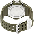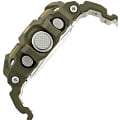 Модель серии Rangeman отличается защитной расцветкой хаки с жёлтыми деталями, брендовый аксессуар с массивными элементами оформления точно станет запоминающейся деталью образа. Наручные часы оснащены различными функциями, которые по достоинству оценят любители путешествовать: отображение восхода и заката солнца, термометр -10°C /+60°C, барометр, высотомер, таймер, мировое времяМировое время Полезное часовое усложнение, отображающее время в основных городах и известных областях по всему миру, оно связано с часовыми поясами, удобно для путешественников и бизнесменов. , 5 будильников, секундомер, цифровой компас. Японский кварцевый механизм. Технология . Индикатор уровня заряда аккумулятора. Ударопрочный корпусУдаропрочный корпусМеханизм заключён в корпус, выполненный из современных материалов, устойчивых к ударам, механическим повреждениям и падению с высоты: инновационный пластик, карбон, нержавеющая сталь, титан. из пластика. Минеральное стекло. Водозащита 20 бар. Автоматическая светодиодная подсветкаСветодиодная подсветкаСветодиодная или LED-подсветка обеспечивает появление яркого холодного свечения за счёт LED-элементов - маленьких лампочек. Они потребляют минимальное количество энергии, чаще всего можно встретить 1 светодиод, в нижней части циферблата.. Габариты: 55,2 x 53,5 x 18,2 мм.
