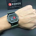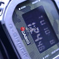 Дизайнеры оснастили модель узнаваемым легендарным ударопрочным корпусомУдаропрочный корпусМеханизм заключён в корпус, выполненный из современных материалов, устойчивых к ударам, механическим повреждениям и падению с высоты: инновационный пластик, карбон, нержавеющая сталь, титан., эксклюзивной деталью стал безельБезельВнешний ободок, закрепляющий стекло. В спортивных часах так называется поворотное кольцо с делениями на циферблате, выполняет роль таймера – замеряет отрезки времени на шкале. Неподвижный безель – элемент декора. Однонаправленно вращающийся безель на дайверских часах позволяет фиксировать моменты погружения и выныривания на поверхность. из нержавеющей стали с IP-покрытиемIP-покрытиеМетод ионного напыления. Демонстрирует повышенную устойчивость к истиранию, окислению и химическим веществам. Под воздействием высокого давления и температуры около 1500°C молекулы металла надёжно соединяются с частицами корпуса часов.. Такое исполнение в несколько раз повысило устойчивость к ударам и повреждениям с сохранением лёгкого веса. Кварцевый японский механизм работает от батарейки, рассчитанной на 2 года. Упрощённый и быстрый механизм замены ремешка. Электролюминесцентная подсветкаЭлектролюминесцентная подсветкаЭлектролюминесцентная панель устанавливается под ЖК-экраном часов, при нажатии кнопки электричество преобразуется в свет за счёт подачи напряжения на атомы фосфора, такой тип подсветки позволяет освещать весь циферблат. сине-зелёного цвета. Минеральное стекло. Водонепроницаемость 200 метров. Дополнительные возможности: будильник со световым сигналом, хронографХронографФункция позволяет измерять отрезки времени с особой точностью: часы, минуты, секунды. Верным признаком хронографа является наличие на циферблате 3 дополнительных окошек-счётчиков., автоматический календарь до 2039 года, мировое времяМировое время Полезное часовое усложнение, отображающее время в основных городах и известных областях по всему миру, оно связано с часовыми поясами, удобно для путешественников и бизнесменов. , секундомер, таймер с автоповтором. Габариты: 49,6 x 43,2 x 12,9 мм.