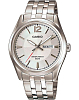 Это идеальный вариант для любителей классики, способный выразить тонкий вкус владельца. Традиционный круглый циферблат с узорчатой серединкой имеет тёмно-серебристые стрелки и метки, хорошо выделяющиеся на светлом фоне. За высокую точность хода отвечает японский кварцевый механизм. Минеральное стекло отличается устойчивостью к возникновению царапин. Люминесцентная подсветкаЛюминесцентное покрытиеПозволяет считывать показания времени в темноте. Производители наносят на стрелки, часовые индексы, безель или поверхность циферблата светонакопительный состав, дающий холодное свечение. стрелок. Степень водозащиты WR 50. Индикация числа и дня недели. Габариты: 44,3 x 38 x 10 мм.