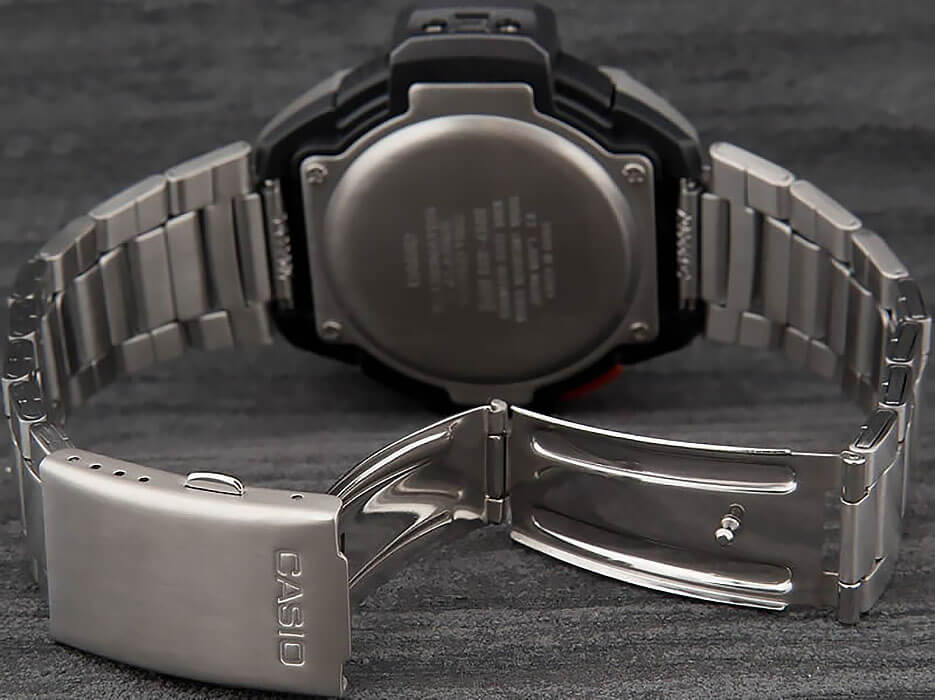 Аналоговый и цифровой вариант отображения времени, летнее/зимнее время, мировое время (есть Москва), секундомер (с возможностью учета времени круга и финиша двух спортсменов), таймер (без автоповтора), 5 будильников, сигнал начала часа, электролюминесцентная подсветка, барометр (погрешность 1-2 мм. рт. ст.), термометр (нужно снимать часы с руки, чтоб остывали), альтиметр (погрешность +/-20м), пластиковый корпус, металлический безель, пластиковое стекло, металлический браслет.
