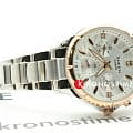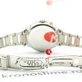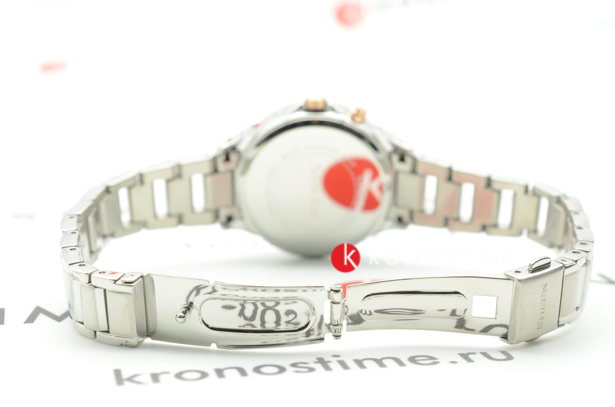 Белый циферблат с оригинальным узором дополнен гладким безелемБезельВнешний ободок, закрепляющий стекло. В спортивных часах так называется поворотное кольцо с делениями на циферблате, выполняет роль таймера – замеряет отрезки времени на шкале. Неподвижный безель – элемент декора. Однонаправленно вращающийся безель на дайверских часах позволяет фиксировать моменты погружения и выныривания на поверхность. цвета розового золота, такой оттенок был получен благодаря нанесению IP-покрытияIP-покрытиеМетод ионного напыления. Демонстрирует повышенную устойчивость к истиранию, окислению и химическим веществам. Под воздействием высокого давления и температуры около 1500°C молекулы металла надёжно соединяются с частицами корпуса часов.. В качестве декорирующих элементов были использованы оригинальные кристаллы Swarovski. Корпус и браслет выполнены из долговечной хирургической стали 316L. Минеральное стекло. Индикация даты и дня недели. Люминесцентная подсветкаЛюминесцентное покрытиеПозволяет считывать показания времени в темноте. Производители наносят на стрелки, часовые индексы, безель или поверхность циферблата светонакопительный состав, дающий холодное свечение.. Водозащита до 50 метров. Габариты: 41,4 x 45,3 x 11,2 мм.