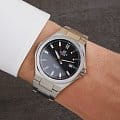 Кварцевый японский механизм Miyota. Точность хода не хуже -10 +15 сек./в месяц. Часы оснащены функцией хронографа. Циферблат серебристого цвета с контрастными индексами. Стрелки и индексы с светонакопительным нанесением. Корпус и браслет выполнены из нержавеющей стали. Сапфировое стекло устойчиво к появлению царапин. Водонепроницаемость 100М. В часах можно плавать. Степень водонепроницаемости не является величиной, эквивалентной функциональной рабочей глубине.
