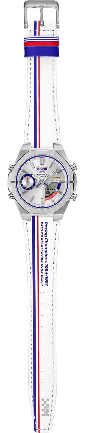 Японские мужские наручные часы Casio Edifice ECB-S10NIS-7A — это высокотехнологичный аксессуар для тех, кто ценит точность, стиль и современные инновации. Модель создана совместно с компанией Nismo, которая занимается автотюнингом и представляет интересы компании Nissan в автоспорте. Модель из коллекции Edifice, оснащённая технологией Bluetooth®, объединяет в себе классический дизайн и цифровые функции, делая каждое использование по-настоящему удобным. Корпус диаметром 43 мм выполнен из прочной нержавеющей стали , что придаёт модели благородства и долговечности. Циферблат серебристого цвета изготовлен по технологии Sunray (солнечные лучи), обеспечивая глубину и игру света. Защиту механизму обеспечивает сапфировое стеклоСапфировое стеклоПрочный и надёжный материал из кристалла сапфира синтетического происхождения, характеризующийся особой твёрдостью и устойчивостью к царапинам и повреждениям., устойчивое к царапинам и с антибликовым покрытием для лучшей читаемости. Часы работают на кварцевом механизме с поддержкой BluetoothBluetoothСовременная технология, позволяющая синхронизировать часы с телефоном и переносить данные. Часы с Bluetooth расширяют возможности вашего смартфона и делают его использование ещё более удобным.. Это даёт возможность автоматически корректировать время, устанавливать будильники, отслеживать дни недели на 6 языках , включая русский. Модель предлагает широкий набор функций: — Секундомер с точностью 1/100 секунды и временем измерения до 24 часов ; — SPLIT-хронографСплит-хронографИспользуется для измерения продолжительности нескольких временных отрезков, начинающихся одновременно, а заканчивающихся в разное время.; — ТаймерТаймерОтсчитывает секунды в обратном направлении в заданном интервале времени. обратного отсчёта от 1 секунды до 24 часов ; — 5 независимых будильников и ежечасный сигнал ; — отображение времени в формате 12/24 часа ; — автоматический календарь с возможностью отображения дня недели до 2099 года. Для комфортного использования в темное время стрелки покрыты люминесцентным составом. Часы также имеют светодиодную подсветкуСветодиодная подсветкаСветодиодная или LED-подсветка обеспечивает появление яркого холодного свечения за счёт LED-элементов - маленьких лампочек. Они потребляют минимальное количество энергии, чаще всего можно встретить 1 светодиод, в нижней части циферблата. циферблата, что делает их особенно удобными в условиях слабого освещения. Часы обладают водозащитой WR100 , подходят для повседневного ношения и плавания без акваланга. Толщина корпуса составляет всего 9.6 мм, благодаря чему часы легко помещаются под манжетом рубашки и не вызывают дискомфорта при носке. Завершает образ кожаный ремень со стандартной застежкой, обеспечивающий надежную фиксацию и комфортную посадку на запястье. Батарейка рассчитана на 2 года автономной работы , а вес модели составляет 69 грамм . Эта модель — идеальный выбор для тех, кто ценит современные технологии , классический стиль и точность японского качества . Casio Edifice — не просто хронограф, а полноценный спутник в деловой и повседневной жизни.