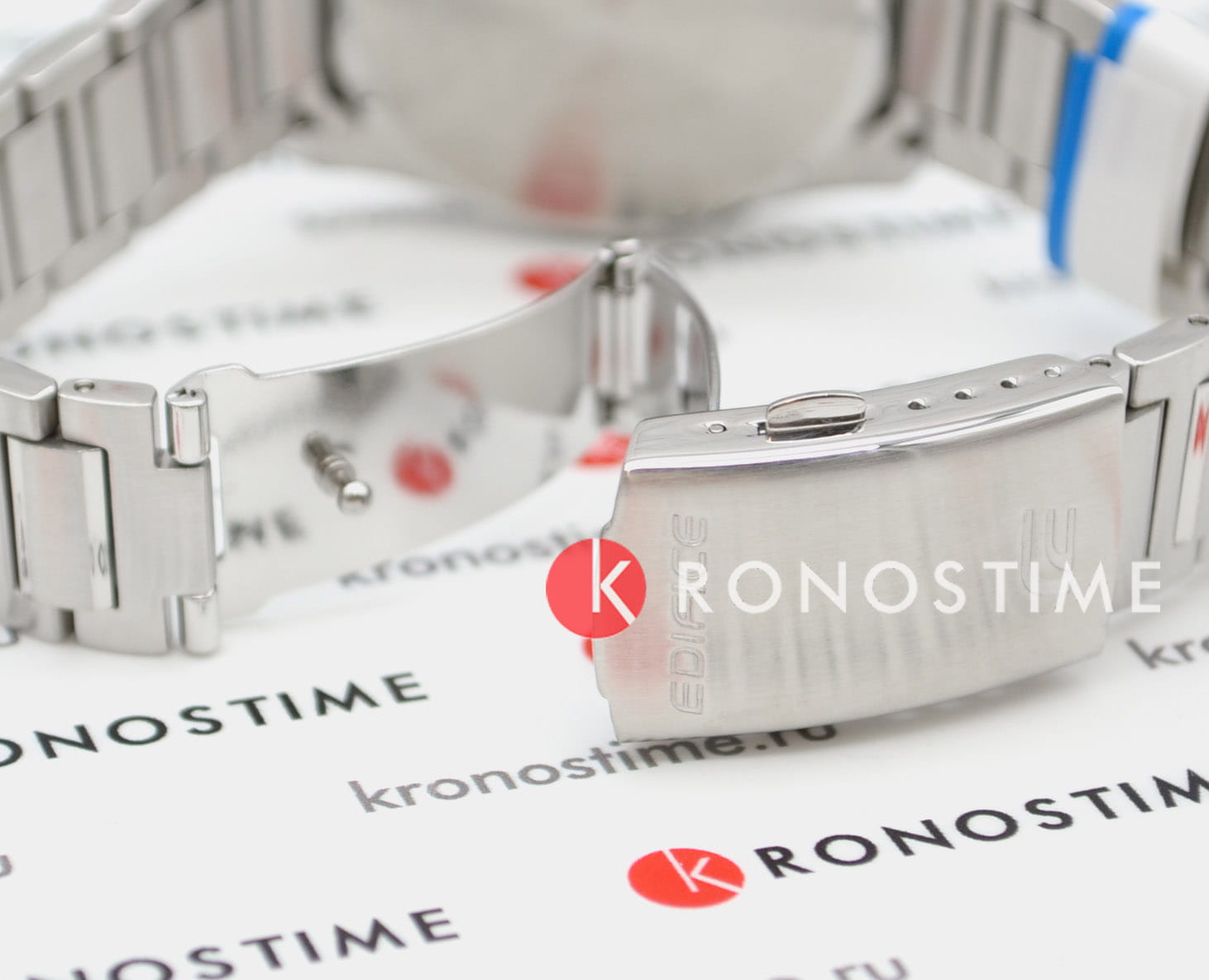 Модель Casio Edifice EFB-710D-2AVUDF сочетает элегантность и спортивную функциональность. Корпус диаметром 41 мм выполнен из нержавеющей стали, а браслет с H-образными звеньями обеспечивает надежную фиксацию и комфорт при ношении.