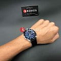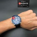 Модель отличается динамичным дизайном с уклоном в автомобильную стилистику, поклонники спортивного стиля по достоинству оценят аксессуар. Односторонне вращающийся безельБезельВнешний ободок, закрепляющий стекло. В спортивных часах так называется поворотное кольцо с делениями на циферблате, выполняет роль таймера – замеряет отрезки времени на шкале. Неподвижный безель – элемент декора. Однонаправленно вращающийся безель на дайверских часах позволяет фиксировать моменты погружения и выныривания на поверхность. имеет цветное IP-покрытиеIP-покрытиеМетод ионного напыления. Демонстрирует повышенную устойчивость к истиранию, окислению и химическим веществам. Под воздействием высокого давления и температуры около 1500°C молекулы металла надёжно соединяются с частицами корпуса часов., дополнительно защищающее от царапин. Оригинально смотрится чёрный ремешок из натуральной кожи с синими акцентами. Японский кварцевый механизм с точностью хода +/- 20 секунд в месяц. Заводная головка с защитой. Закручивающаяся задняя крышка. Водонепроницаемость 100 метров. Минеральное стекло, устойчивое к царапинам. Подсветка NeobriteПодсветка NeobriteИспользование светонакопительных составов на основе сульфида цинка или алюмината стронция, яркий свет можно наблюдать на протяжении 6-10 часов после «зарядки» часов около источника света.. Секундомер, индикация числа. Габариты: 49,3 x 43,2 x 11,7 мм.