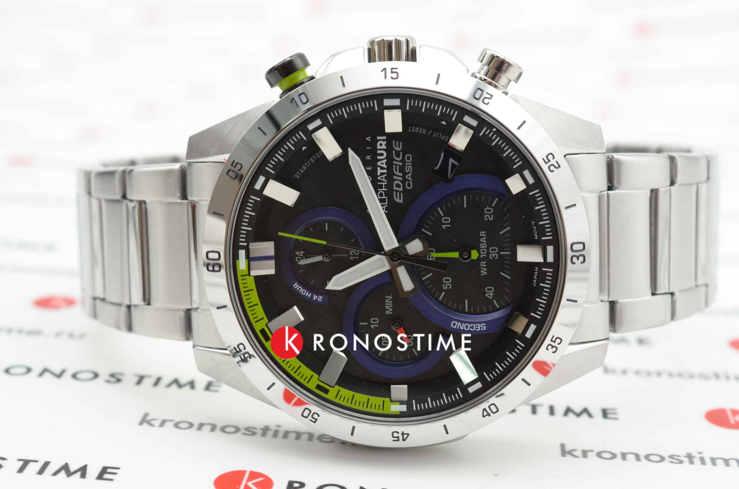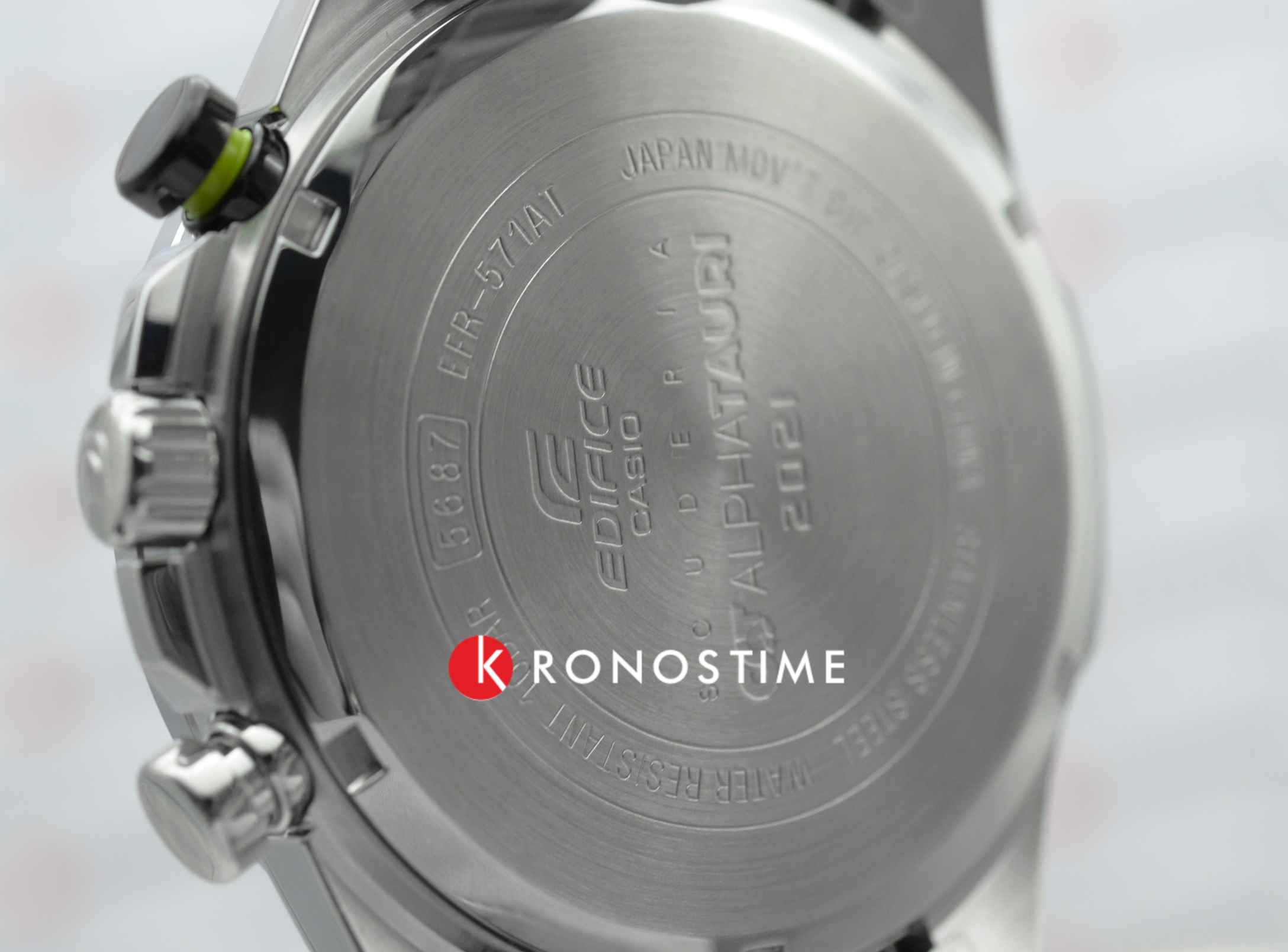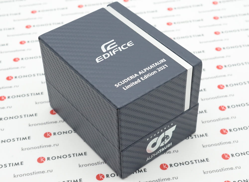 Часы Casio Edifice EFR-571AT-1AER из лимитированной серии, созданной в коллаборации с итальянской гоночной командой Формулы-1 Scuderia AlphaTauri. Внутренний корпус часов изготовлен из того же углеродного волокна 6K, что используется в аэродинамических крыльях гоночной машины Scuderia AlphaTauri. Элементы циферблата и секундная стрелка окрашены в флуоресцентный желтый цвет, который используется на трассах Формулы-1 для безопасности.