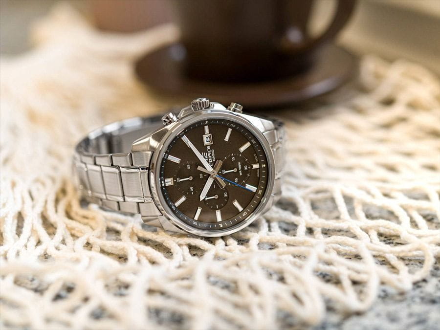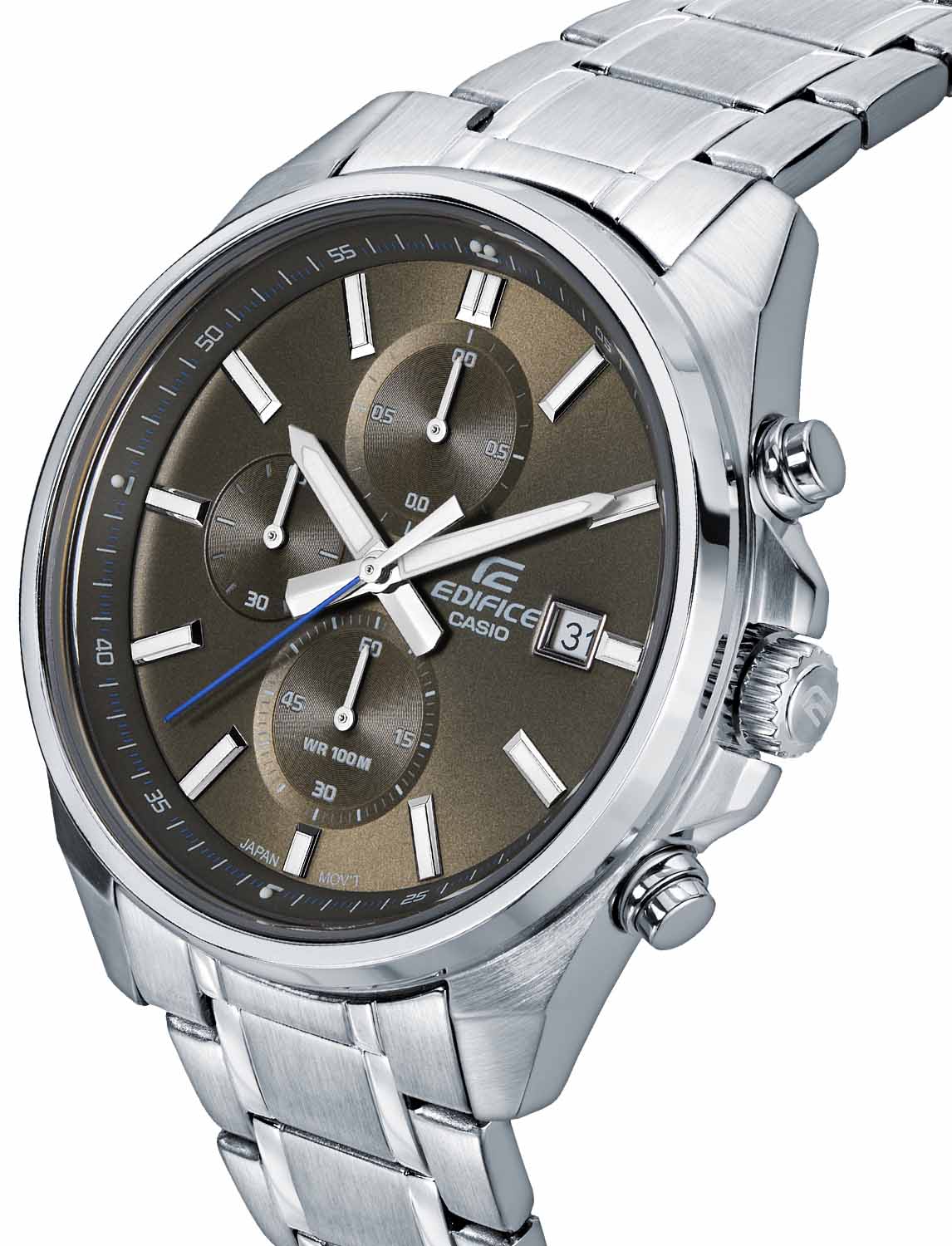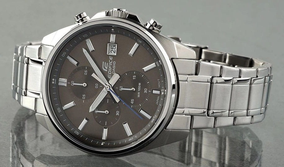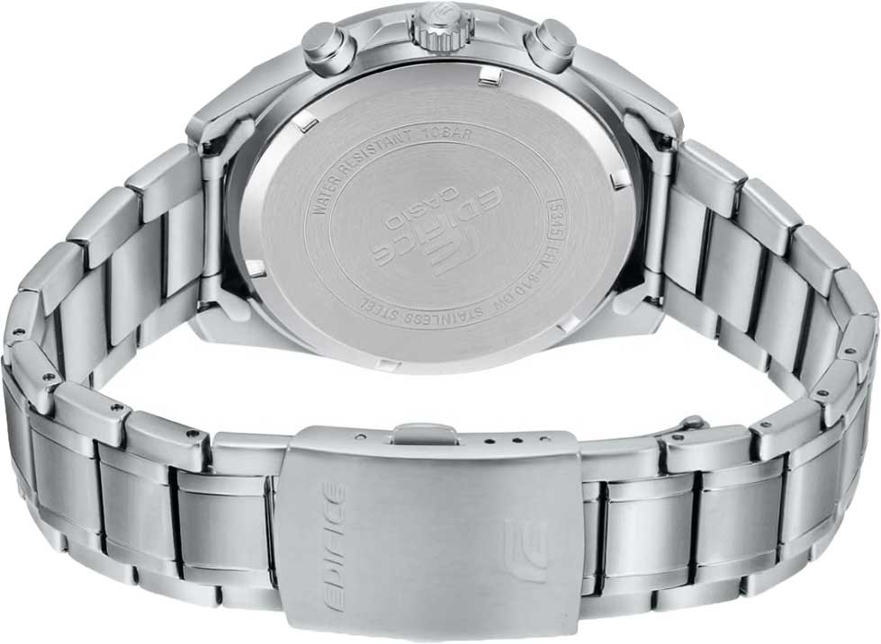 Японские мужские часы-хронографХронографФункция позволяет измерять отрезки времени с особой точностью: часы, минуты, секунды. Верным признаком хронографа является наличие на циферблате 3 дополнительных окошек-счётчиков. с секундомеромСекундомерСекундоме́р — прибор, способный измерять интервалы времени с точностью до долей секунды. Casio Edifice EFV-610D-5C, кварцевый механизм с высокой точностью. Класс водозащиты: 100 метров, позволит плавать, нырять и заниматься другими водными видами спорта. Корпус часов изготовлен из стали. Подсветка NeobriteПодсветка NeobriteИспользование светонакопительных составов на основе сульфида цинка или алюмината стронция, яркий свет можно наблюдать на протяжении 6-10 часов после «зарядки» часов около источника света. обеспечивает длительное послесвечение в темноте даже после кратковременного нахождения на свету. Часы-хронографХронографФункция позволяет измерять отрезки времени с особой точностью: часы, минуты, секунды. Верным признаком хронографа является наличие на циферблате 3 дополнительных окошек-счётчиков. с секундомеромСекундомерСекундоме́р — прибор, способный измерять интервалы времени с точностью до долей секунды. с точностью показаний 1/10с и временем измерения 1ч. Циферблат с метками в виде штрихов. Окошко даты находится в положении 3 часа. Задняя крышка с винтовым фиксатором. Батарея рассчитана на 3 года. Водонепроницаемость в соответствии с ISO 2281. Литой стальной браслет на раскладной застёжкеРаскладная застёжкаТакой тип застёжки используется только на браслетах из металла. Она никогда не раскрывается полностью, происходит разделение на 2 и более частей. Раскладывающая застёжка снизит вероятность потери часов к минимуму.. Предохранительная защелка на браслете препятствует случайному расстегиванию.