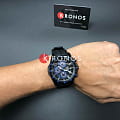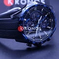 Модель как воплощение спортивной динамики имеет характерные дизайнерские элементы оформления: карбоновый циферблат с текстурной поверхностью, крупные счётчики, надёжный каучуковый ремешок, синие цветовые акценты. Наручные часы работают за счёт технологии , получая энергию от солнечного света. Индикатор уровня заряда элемента питания позволяет следить за необходимостью подзарядить аккумулятор. Ударопрочный корпусУдаропрочный корпусМеханизм заключён в корпус, выполненный из современных материалов, устойчивых к ударам, механическим повреждениям и падению с высоты: инновационный пластик, карбон, нержавеющая сталь, титан. из нержавеющей стали 316L с ионным IP-покрытиемIP-покрытиеМетод ионного напыления. Демонстрирует повышенную устойчивость к истиранию, окислению и химическим веществам. Под воздействием высокого давления и температуры около 1500°C молекулы металла надёжно соединяются с частицами корпуса часов.. Минеральное стекло. Люминесцентная подсветкаЛюминесцентное покрытиеПозволяет считывать показания времени в темноте. Производители наносят на стрелки, часовые индексы, безель или поверхность циферблата светонакопительный состав, дающий холодное свечение.. Закручивающаяся задняя крышка. Водонепроницаемость 10 бар. Отображение даты, секундомер. Габариты: 51,5 x 47,6 x 12 мм.